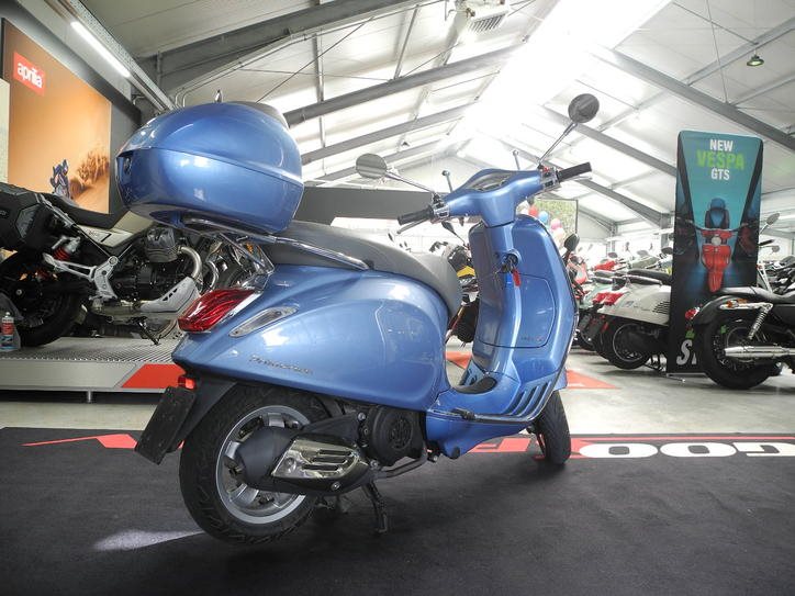 Gebrauchtfahrzeug Vespa Primavera 125 in blau vom Vespa Vertragshändler mit PRIME Status * TOP-ZUSTAND aus 1. Hand mit Original Vespa Topcase mit Rückenpolster und kleinem Windschild, Kundendienst und TÜV kostenlos neu bei Verkauf