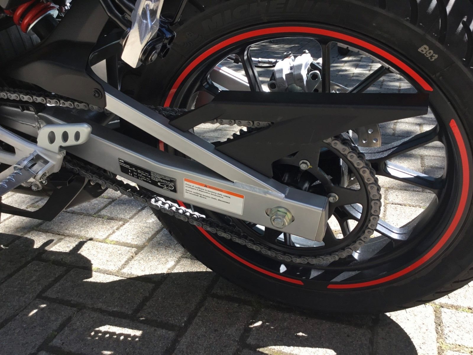 - 125 cm3 Euro 5+ Motor.Der Motor der Aprilia RS 125 ist ein Einzylinder mit Vierventil-Technik, Flüssigkeitskühlung und Euro 5+. Er wurde entwickelt, um in seiner Klasse die maximale Leistung zu liefern. Die Spitzenleistung beträgt 15 PS, kombiniert mit einem beeindruckenden Drehmoment - eine brillante Performance, die Adrenalin und volle Kontrolle in jeder Kurve garantiert.