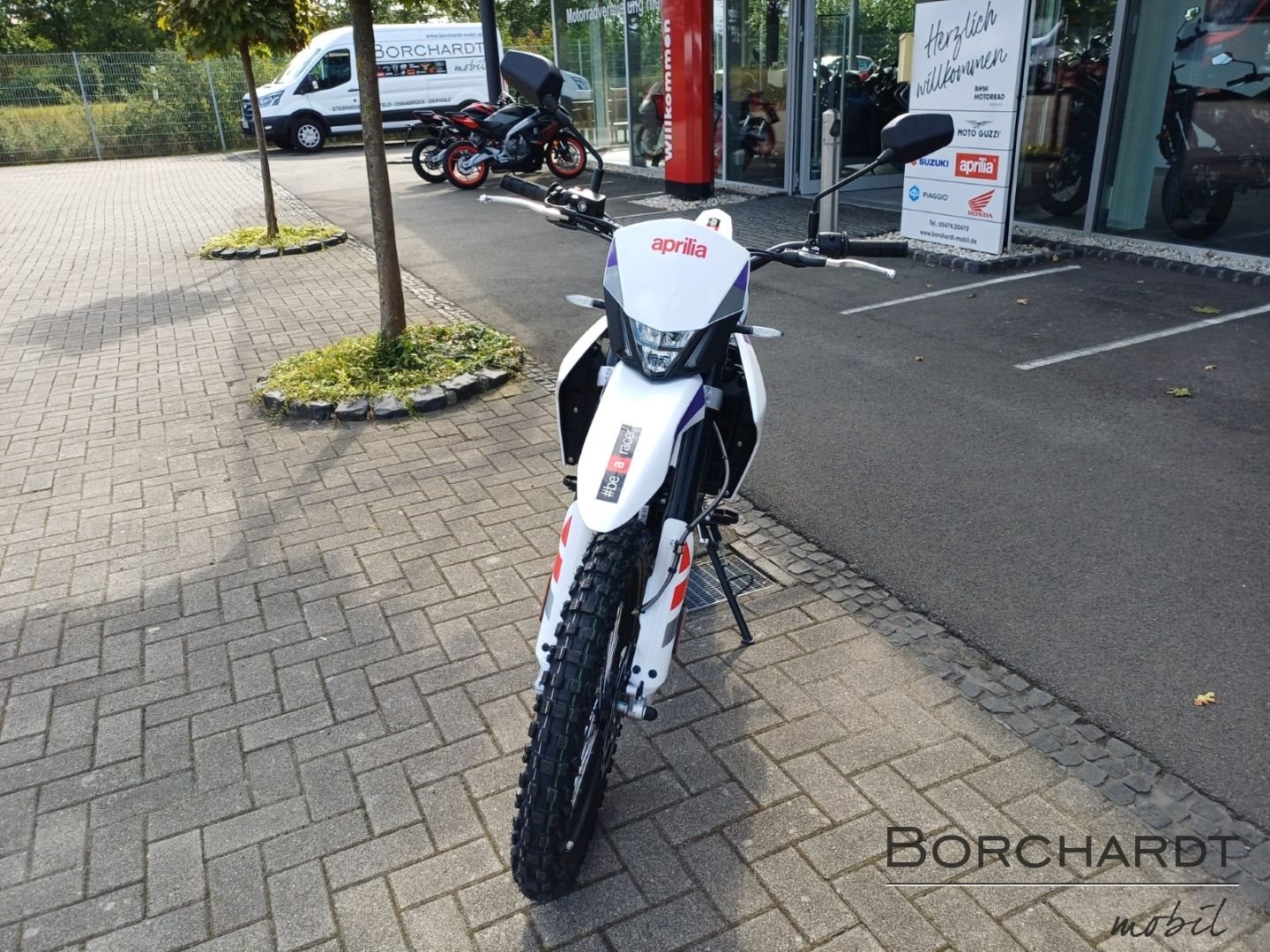 Die Aprilia RX 125 treibt dich zu Abenteuern an, sie ist wendig auf der Straße und unaufhaltsam im Gelände. Sie ist in der Offroad-Tradition von Aprilia verwurzelt und hat die triumphalen Siege des Aprilia Tuareg Rally in seiner DNA. Dank raffinierter technischer Lösungen und eines modernen, Euro 5+ konformen Motors ist die RX 125 bereit, sich jeder täglichen Herausforderung zu stellen.