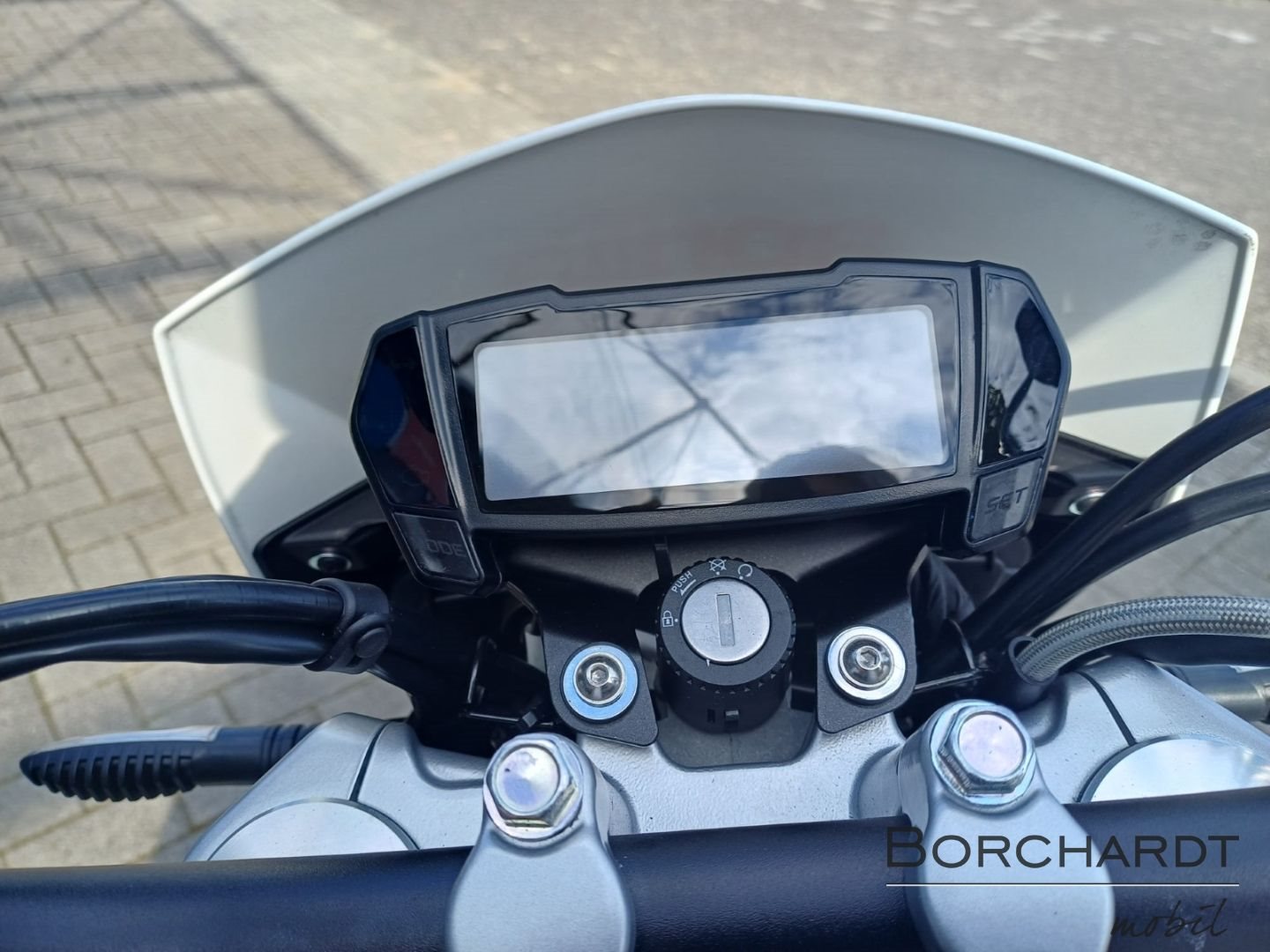 Hi-Tech-AbenteuerDas kompakte digitale Farb-Cockpit liefert während der Fahrt klare und detaillierte Fahrzeuginformationen. Das Staufach unter der Sitzbank ist so konfiguriert, dass es einen USB-Anschluss für lange Offroad-Abenteuer bietet. Die Front der Aprilia RX 125 wird von einer Full-LED-Lichteinheit dominiert, die auch unter schwierigsten Bedingungen für optimale Sicht sorgt.