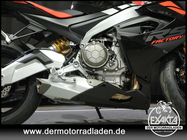 Dank ihrer hervorragenden Ausstattung und einer DNA, die kompromisslos auf Racing ausgelegt ist, steht die RS 660 Factory an der Spitze der Modellreihe endash für alle, die auf jeder Strecke das Maximum verlangen. Die Spitzenleistung des Öhlins-Fahrwerks bringt die RS 660 Factory auf die Straße. Sie besticht durch ihr aggressives Design, das sie als das sportlichste und raffinierteste Motorrad ihrer Klasse kennzeichnet. Die außergewöhnliche Performance wird durch die von der MotoGP inspirierte Aerodynamik mit Winglets, den sportlichen Zweizylindermotor mit 105 PS und das geringe Gewicht von nur 183 kg gewährleistet. Die RS 660 Factory erreicht eine Höchstgeschwindigkeit von 240 km/h und ist damit bereit, jede Kurve zu beherrschen und ein einzigartiges Fahrerlebnis zu bieten.