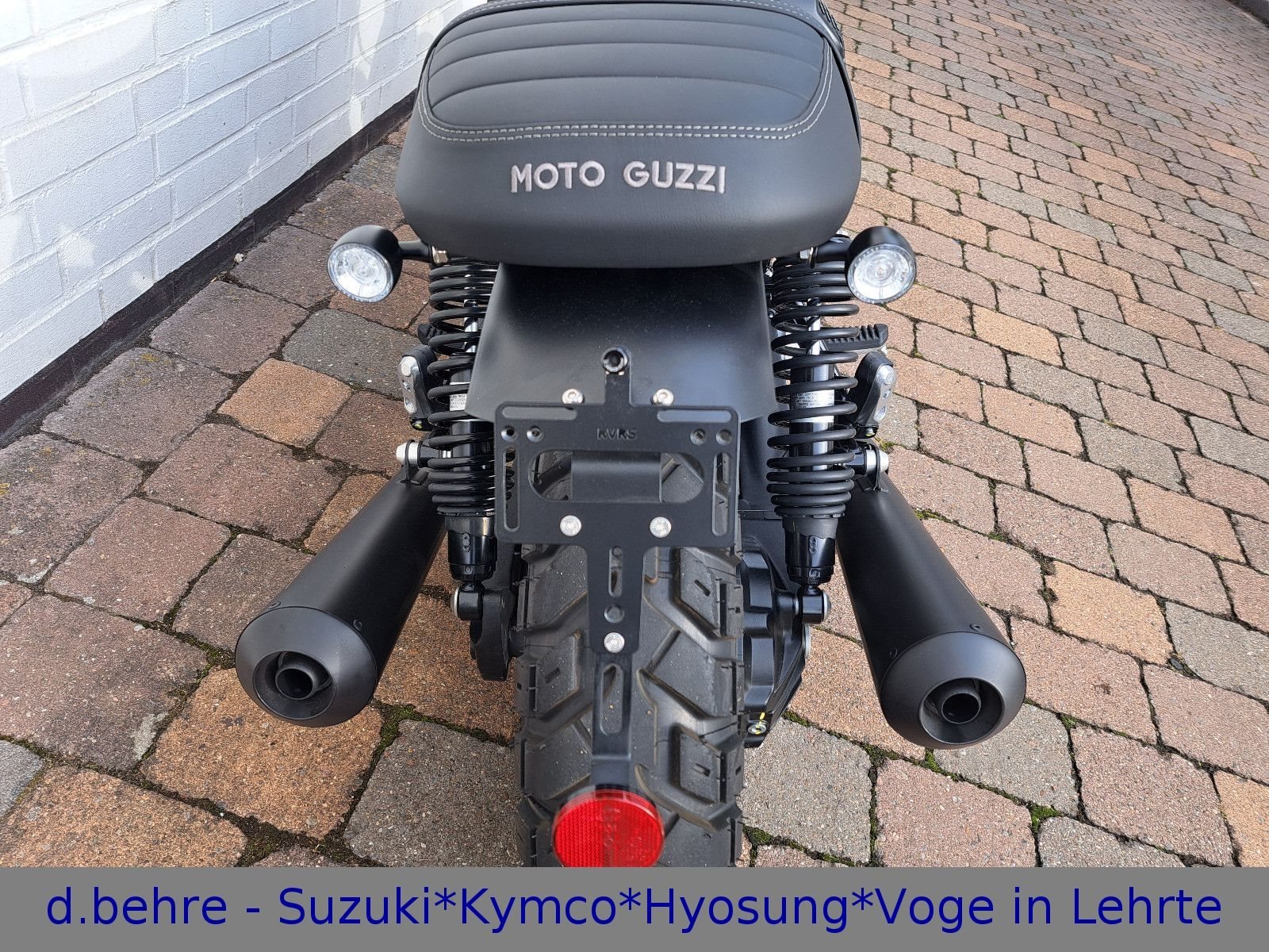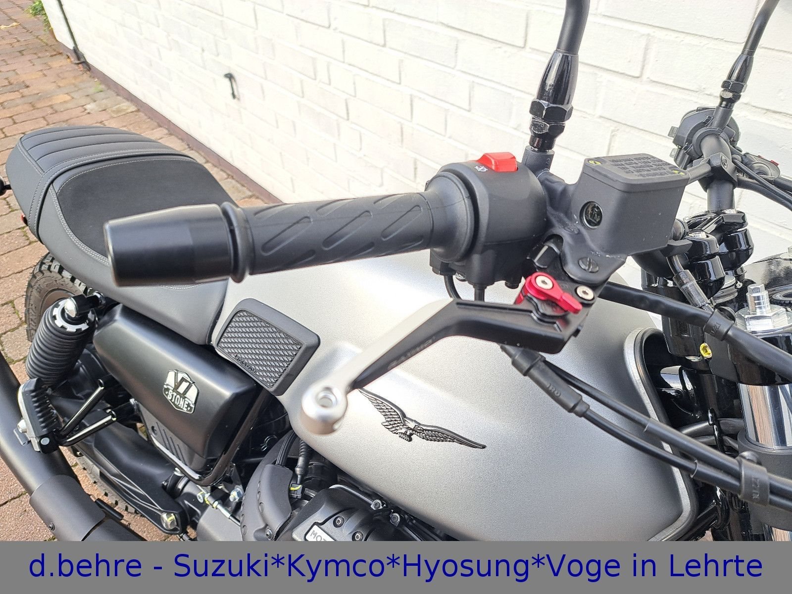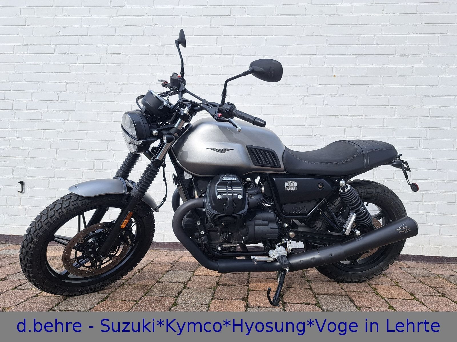 Moto Guzzi V7 Stone 850 aus 2. Hand (1. Hand Tageszulassung Händler). Kurzes Heck + LED Blinker mit kombinierten Rücklicht, Auspuffanlage Agostini, Brems- und Kupplungshebel verstellbar, umnbereift auf Heidenau K60. Inspektion bei Kauf neu (Moto Guzzi). 1 Jahr gestzliche Sachmangelhaftung.