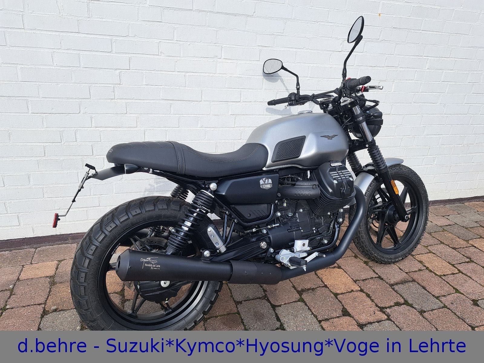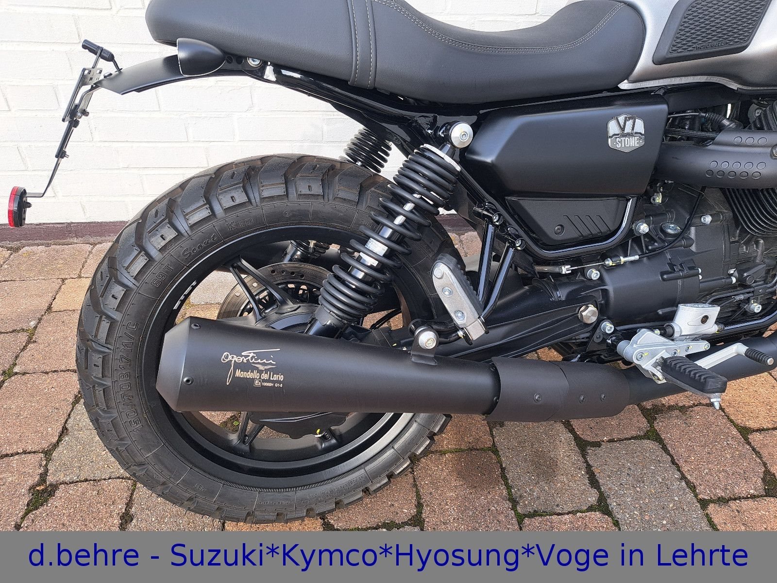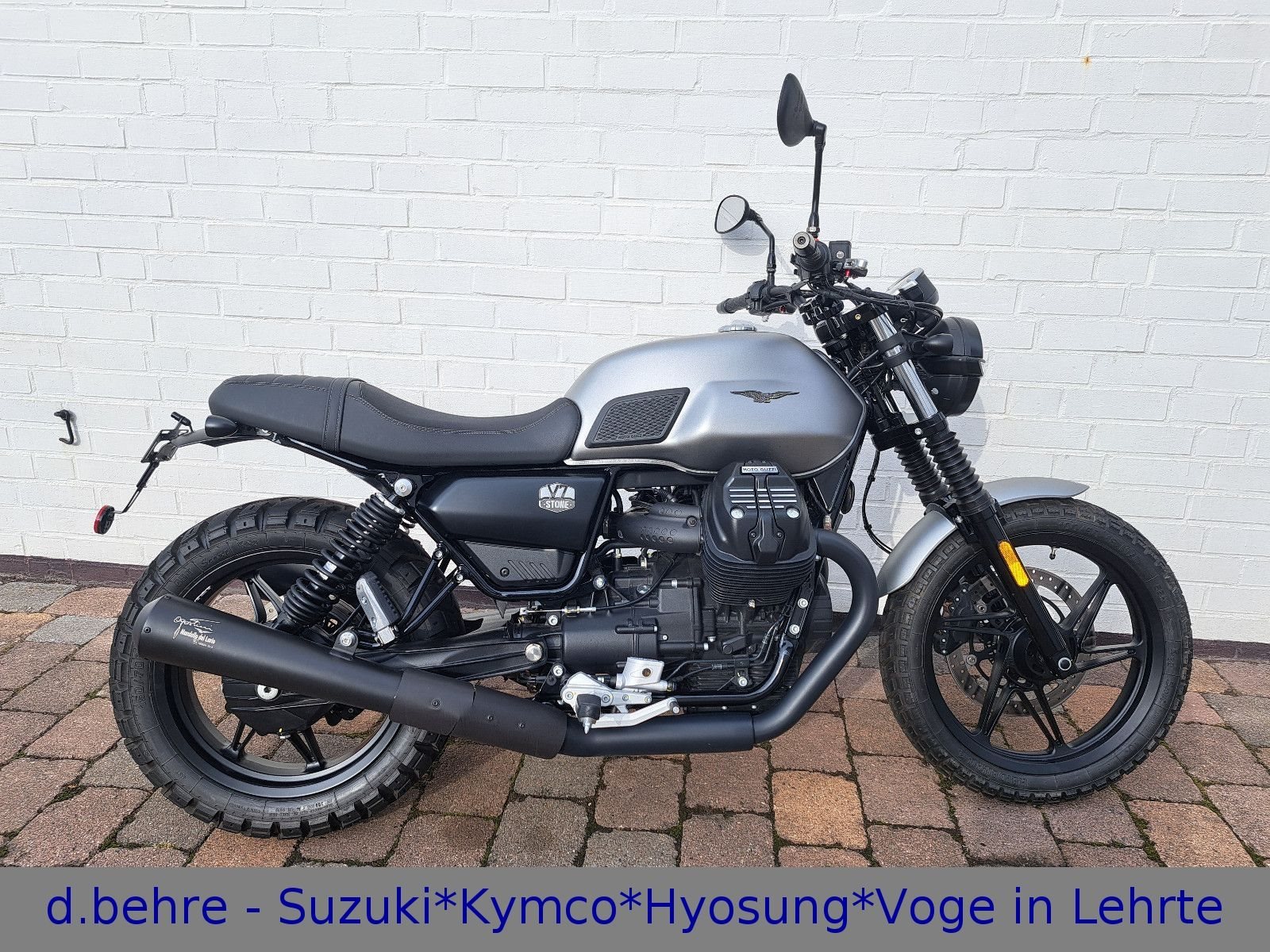 Moto Guzzi V7 Stone 850 aus 2. Hand (1. Hand Tageszulassung Händler). Kurzes Heck + LED Blinker mit kombinierten Rücklicht, Auspuffanlage Agostini, Brems- und Kupplungshebel verstellbar, umnbereift auf Heidenau K60. Inspektion bei Kauf neu (Moto Guzzi). 1 Jahr gestzliche Sachmangelhaftung.