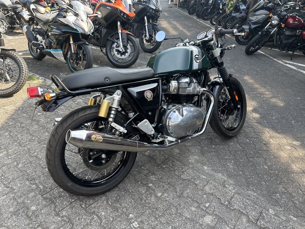 • Cafe Racer mit coolem Auspuff und der legendären Farbe British Racing Green mit sehr wenig Kilometern