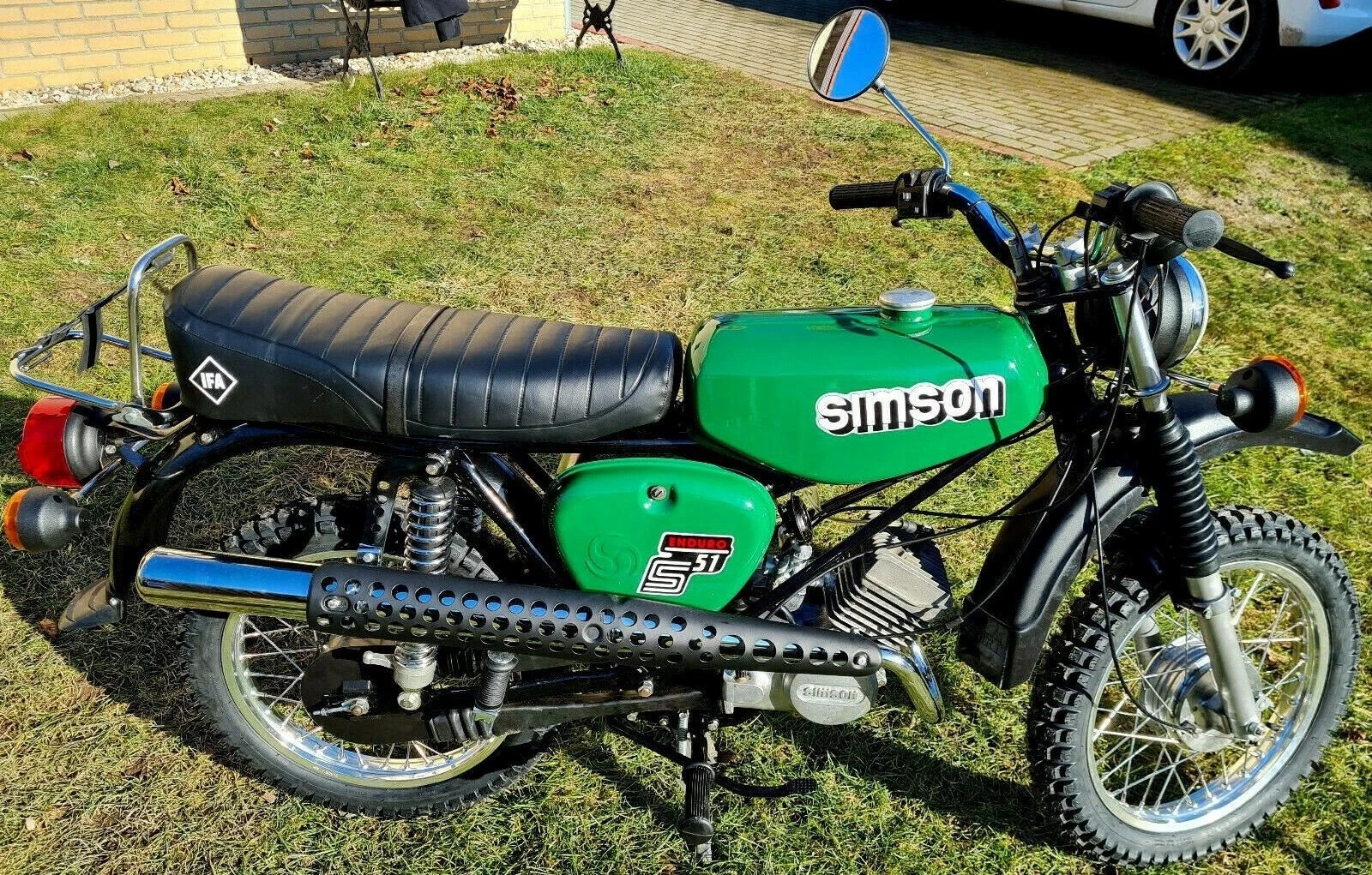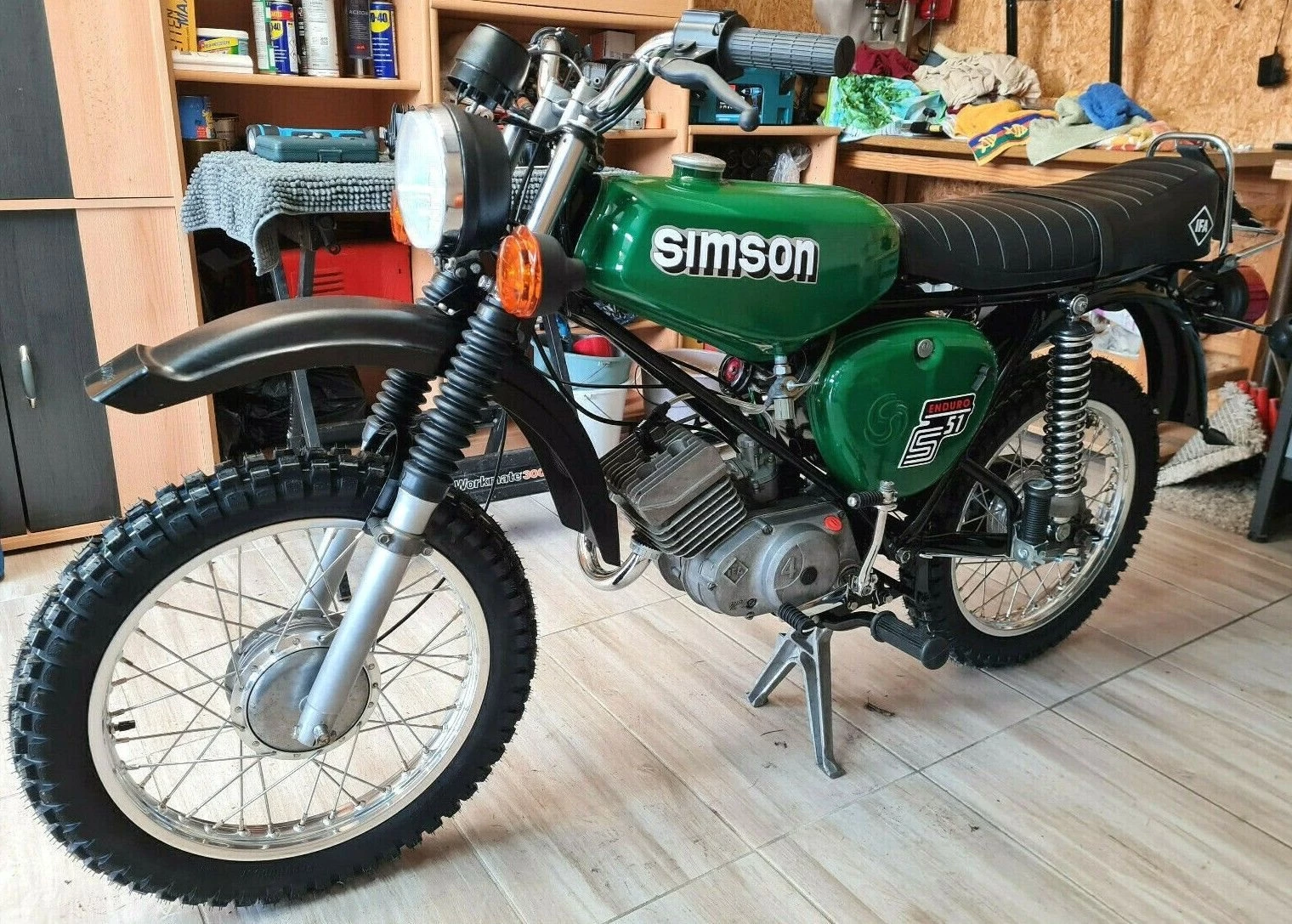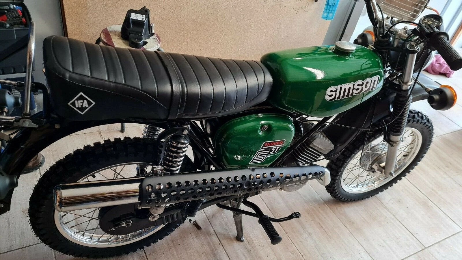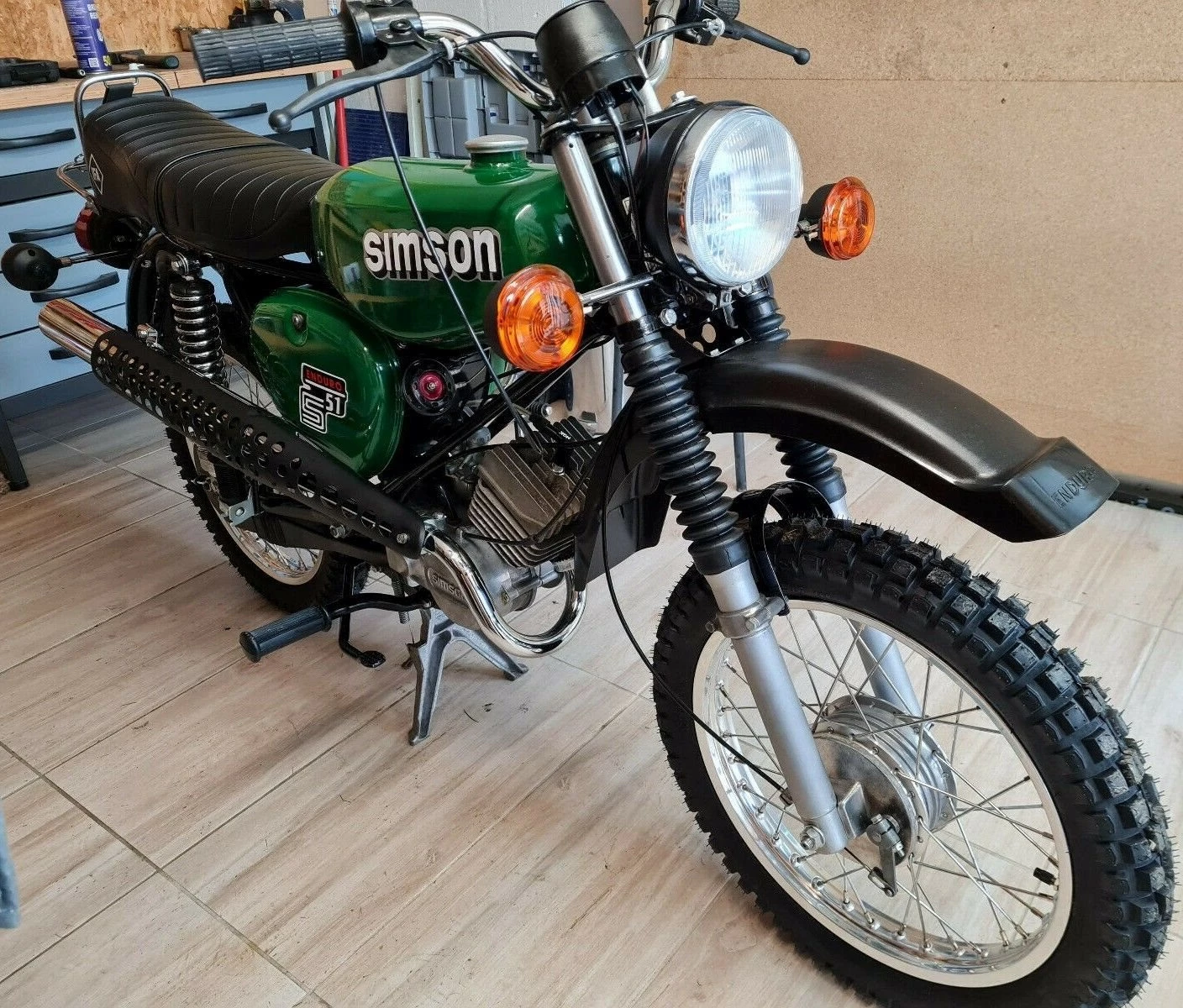 Wir haben viel Wert auf originalität gelegt, was sich im Detail wiederspiegelt wie z.B. die orig. Enduro Sitzbank, ein originales Blech (mit der Blecherhöhung) und orig. neuwertigem Saumstoff der nicht nach einer Sasion durch ist. Die neuen Enduro Kompletträder sind verstärkt und natürlich mit Edelstahl bespeicht worden.