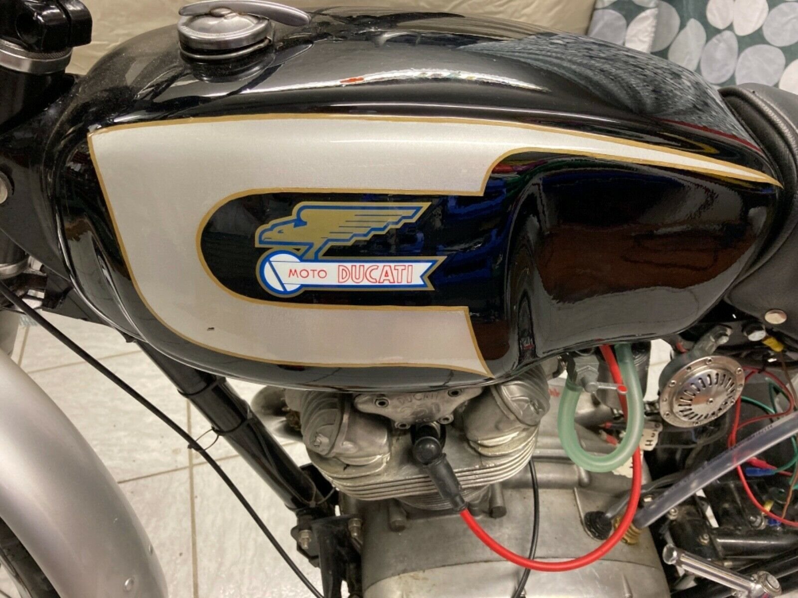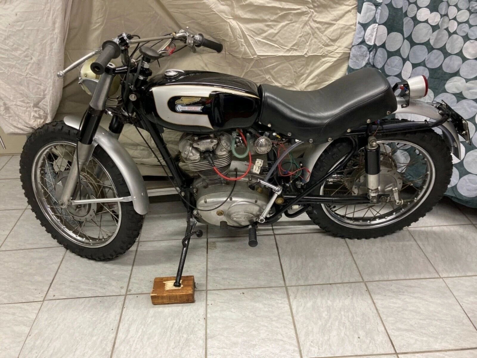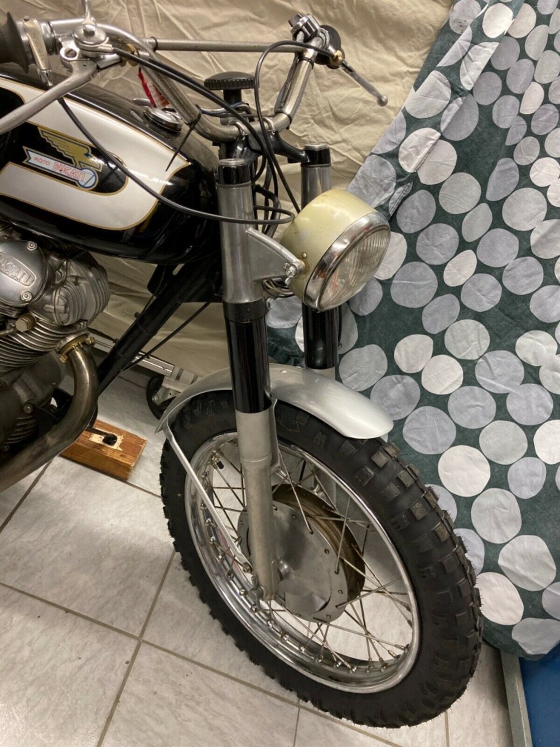 Dieser teilrestaurierte 250 Motocross / Scrambler ist ein seltenes Stück des Scrambler-Erbes von Ducati. Die Maschine wurde aus Teilen aufgebaut, die aus USA eingeführt wurden, wohin der Großteil der meisten Motorräder exportiert wurden. Er wurde unter Verwendung eines Großteils der vorhandenen Patina in einer Privatsammlung aufbewahrt.