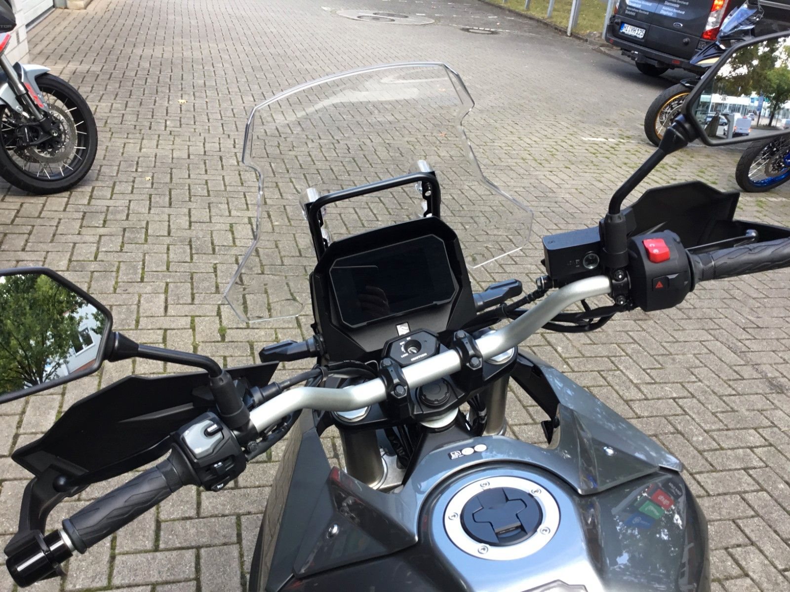 Satte fünf Zoll misst das vollfarbige TFT-LCD Multifunktions-Display und liefert Dir alle Infos zu Deinem Ride. Automatisch oder manuell kannst Du zwischen den zwei Anzeigemodi Tag oder Nacht wechseln, so dass Du den Screen bei allen Lichtverhältnissen perfekt ablesen kannst. Und wenn Du Deine V-Strom 800 gerade sportlich um die Ecken treibst, signalisiert Dir die programmierbare Drehzahlanzeige den idealen Zeitpunkt für den Gangwechsel