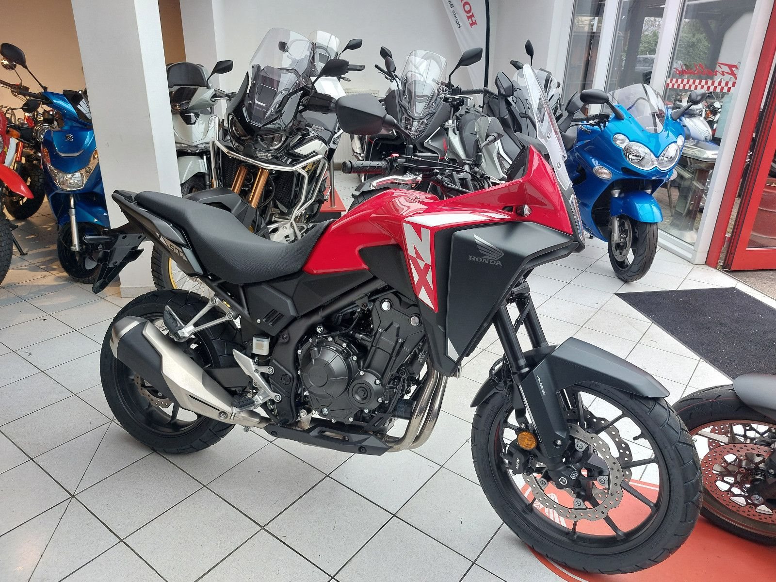 Honda NX500 Vorführfahrzeug, 5 Zoll TFT Farbdisplay mit Konnektivität, HSTC Traktionskontrolle, Notbremssignal, Upside Down Gabel, LED Beleuchtung, Euro 5+, CO2 kombiniert 82g/km, Kraftstoffverbrauch nach WMTC 3,6 l/100Km, Gewicht vollgetank 196kg.