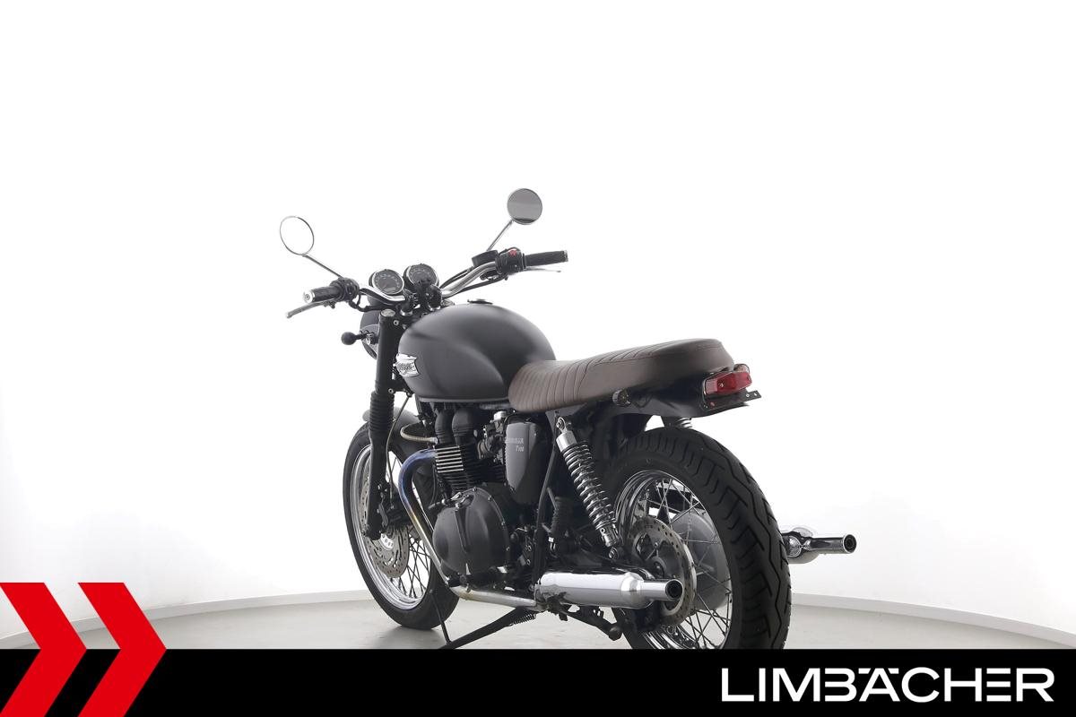 Eine Triumph Bonneville T100 in gepflegtem Zustand u.a. mit kurzem Kennzeichenhalter und Sonderlenker.