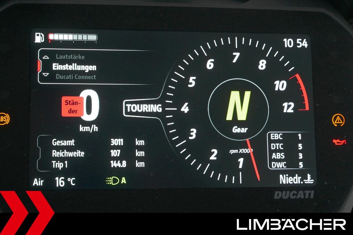 Eine scheckheftgepflegte Ducati Multistrada V4 S Travel aus erster Hand in sehr gepflegtem Zustand u.a. mit Ducati-Koffersystem.