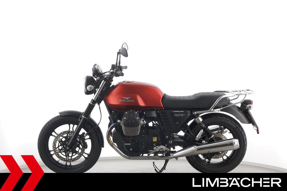 Eine Moto Guzzi V7 II Stone aus erster Hand in gepflegtem Zustand u.a. mit Originalausstattung sowie Gepäckträger.