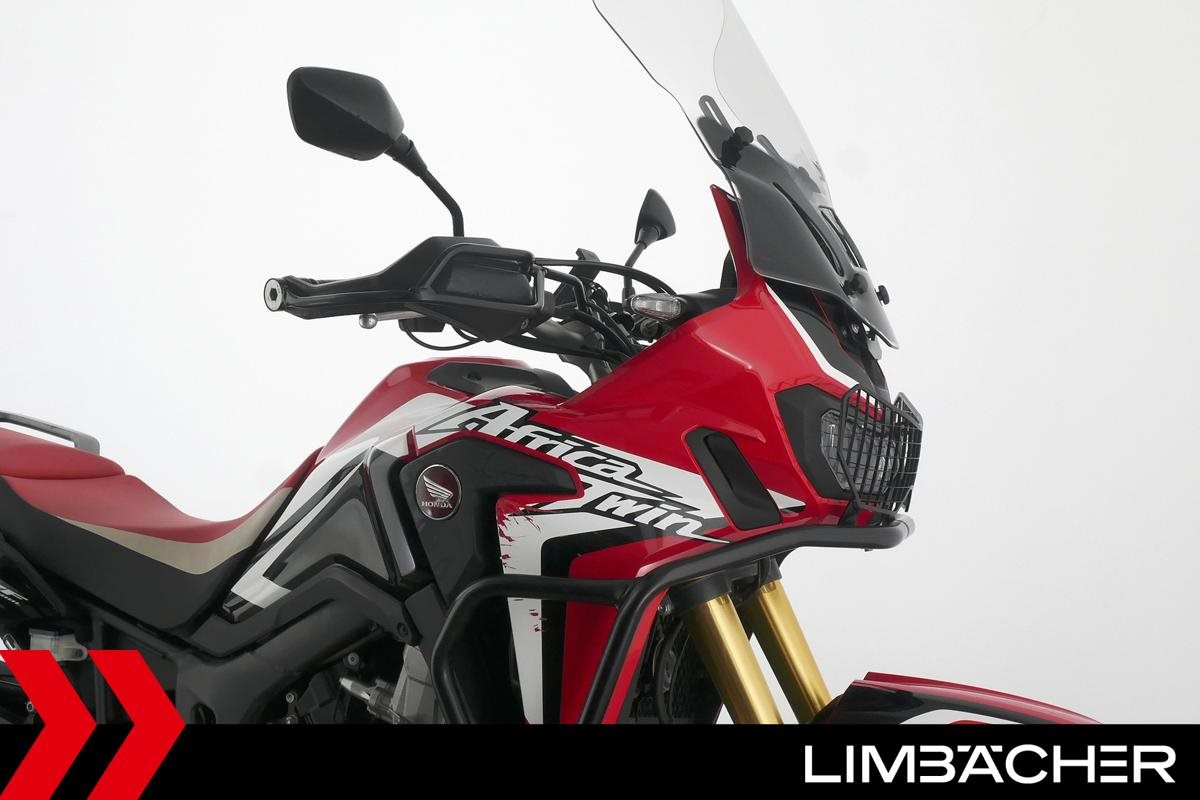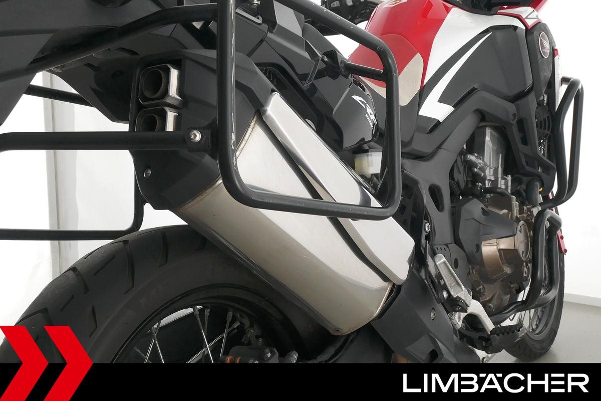 Eine Honda CRF 1000 L Africa Twin DCT aus zweiter Hand in gebrauchtem Zustand u.a. mit Sturzbügel 4teilig sowie Koffernhalter.