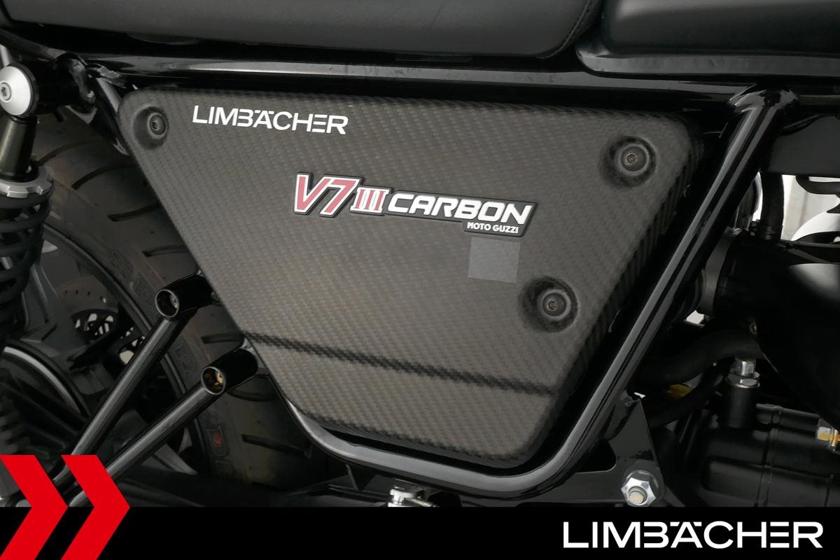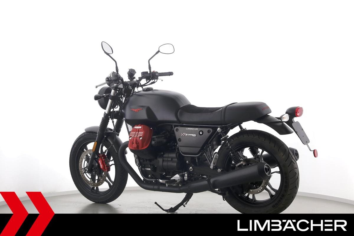 Eine Moto Guzzi V7 III Carbon aus zweiter Hand in gepflegtem Zustand als Sondermodell 1020/1921 u.a. mit gesteppter Komfortsitzbank.