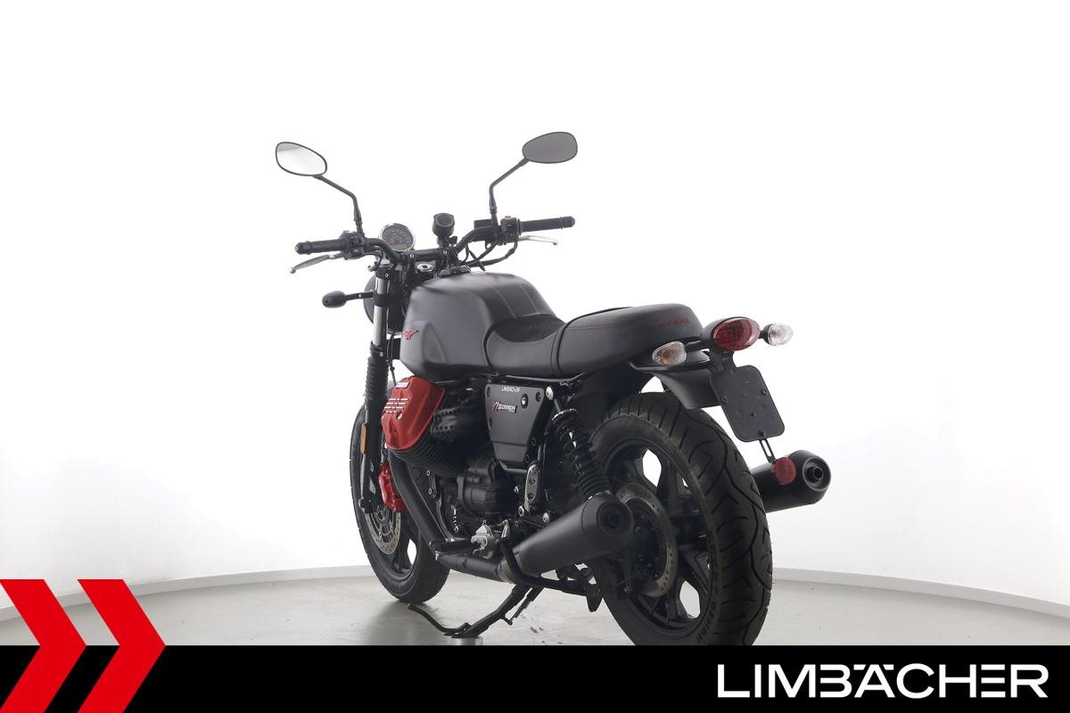 Eine Moto Guzzi V7 III Carbon aus zweiter Hand in gepflegtem Zustand als Sondermodell 1020/1921 u.a. mit gesteppter Komfortsitzbank.
