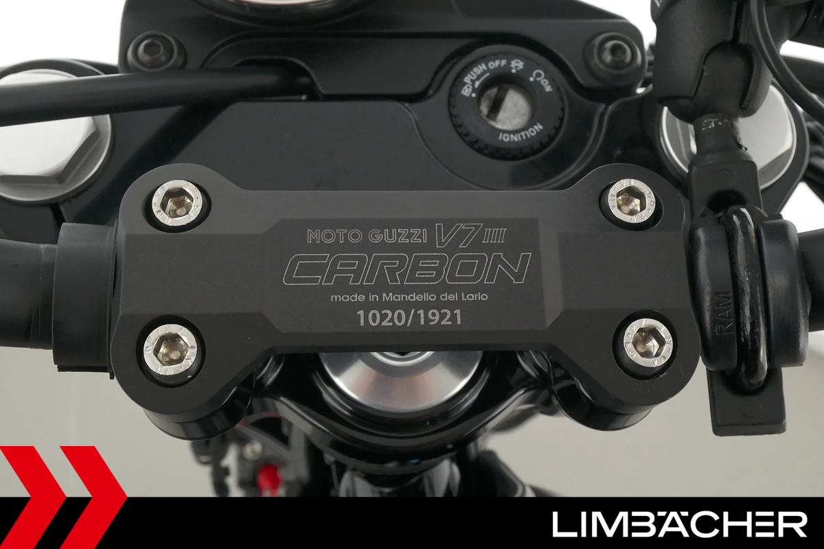 Eine Moto Guzzi V7 III Carbon aus zweiter Hand in gepflegtem Zustand als Sondermodell 1020/1921 u.a. mit gesteppter Komfortsitzbank.