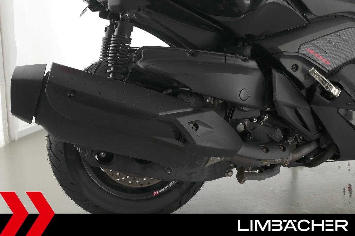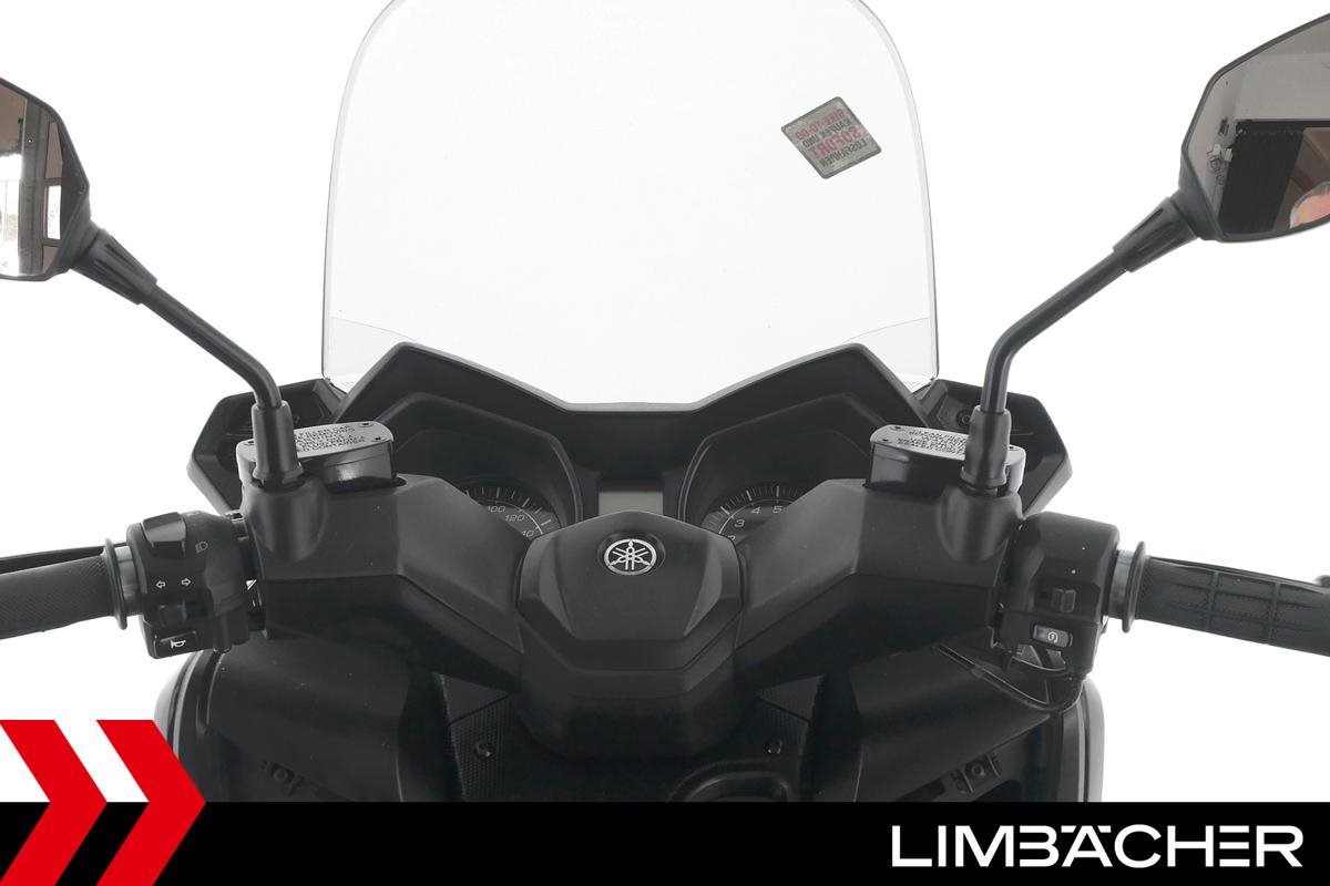Ein scheckheftgepflegter Yamaha XMAX 400 in gepflegtem Zustand u.a. mit kurzem Kennzeichenhalter sowie grossem Staufach unter der Sitzbank.