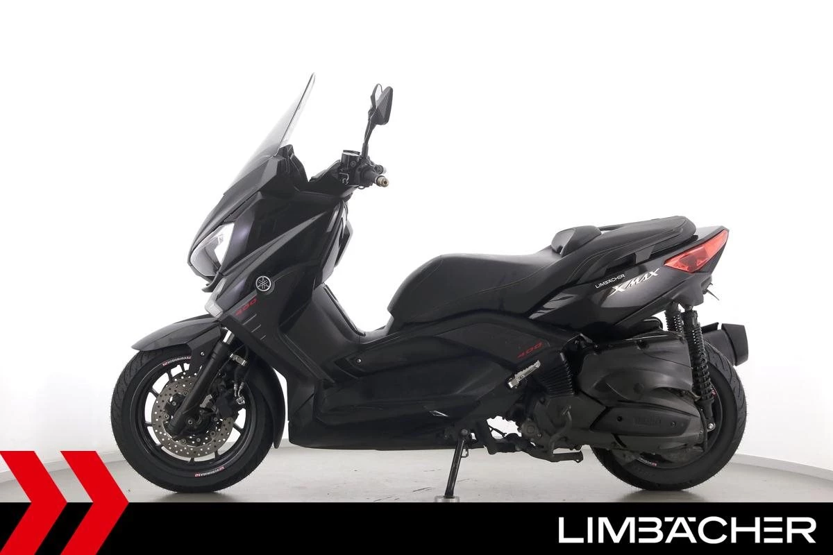Ein scheckheftgepflegter Yamaha XMAX 400 in gepflegtem Zustand u.a. mit kurzem Kennzeichenhalter sowie grossem Staufach unter der Sitzbank.