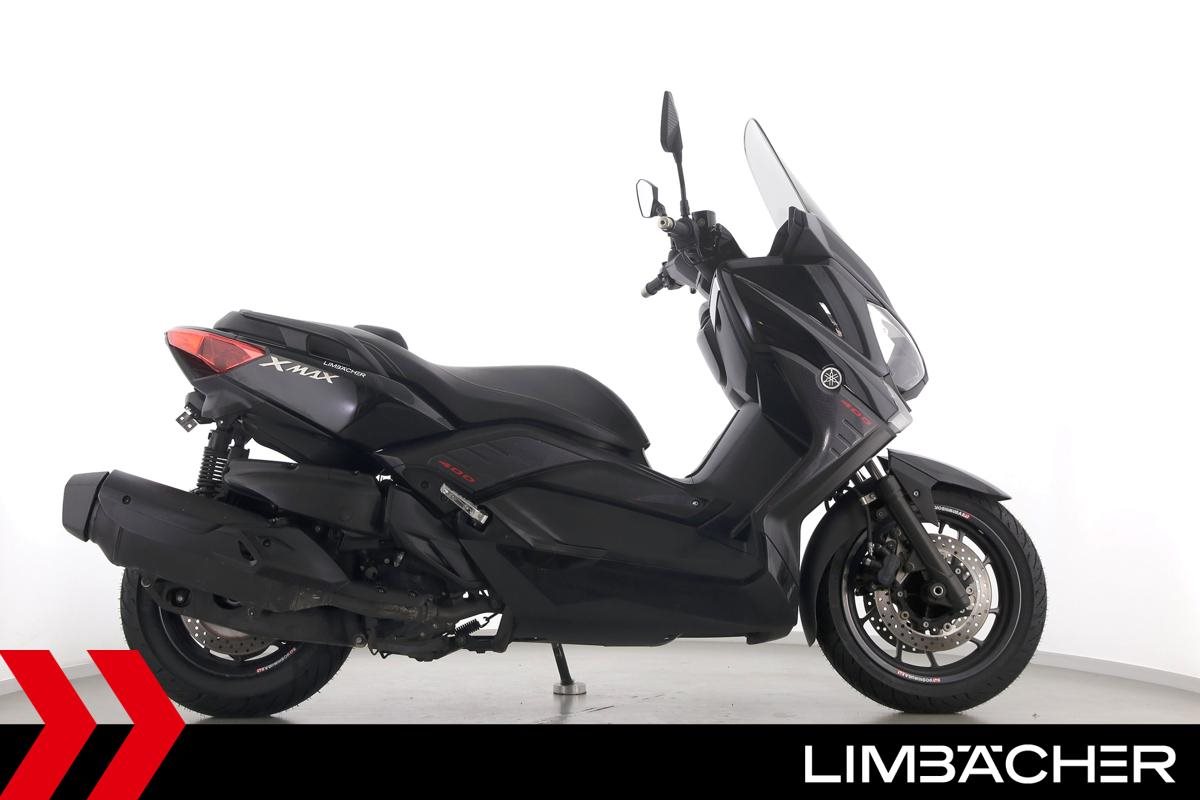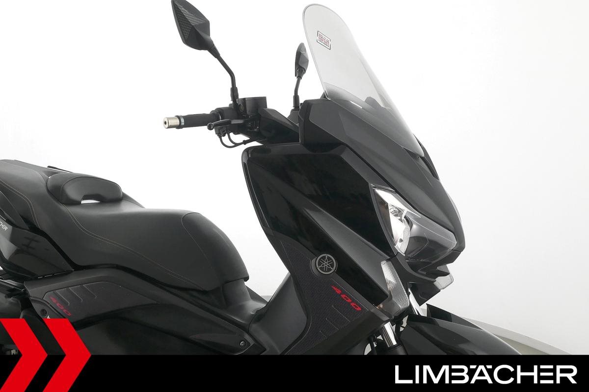 Ein scheckheftgepflegter Yamaha XMAX 400 in gepflegtem Zustand u.a. mit kurzem Kennzeichenhalter sowie grossem Staufach unter der Sitzbank.