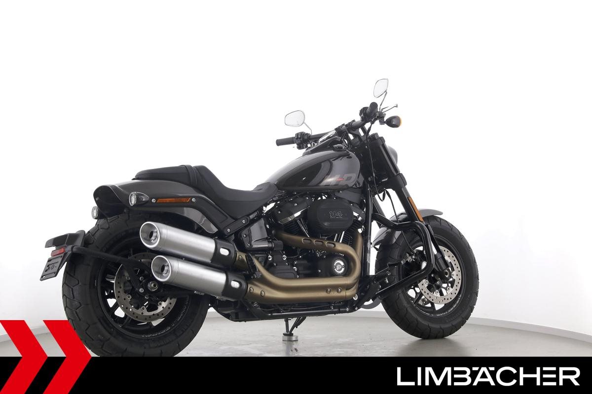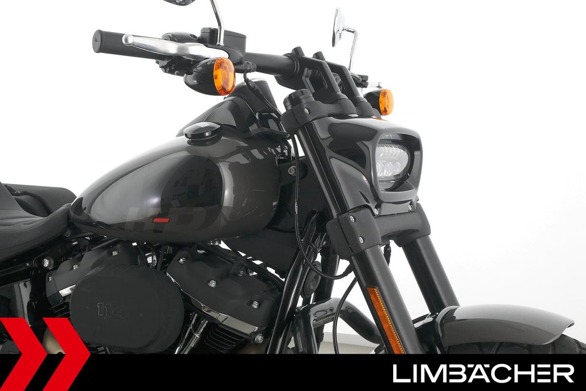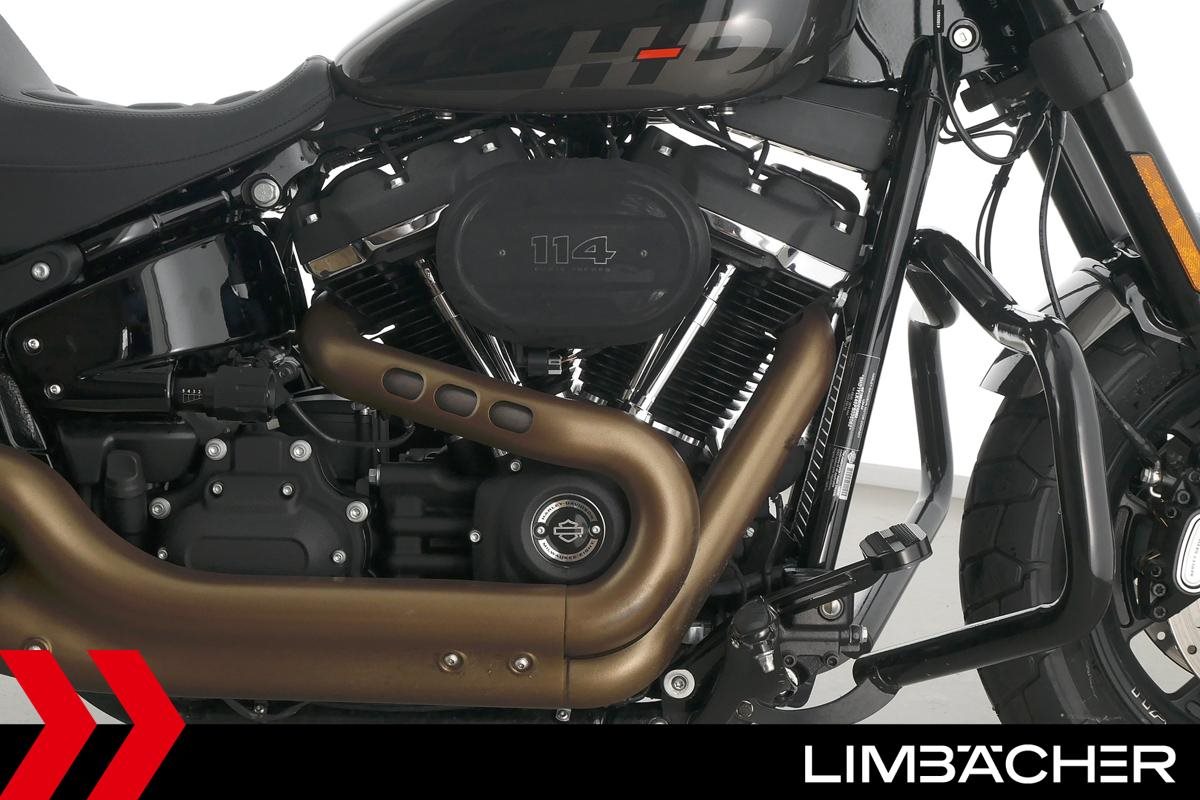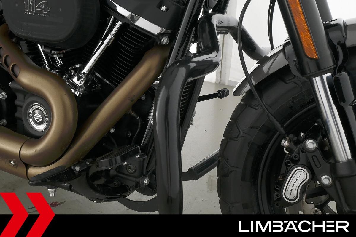 Eine scheckheftgepflegte Harley-Davidson Softail Fat Bob 114 FXFBS aus zweiter Hand in sehr gepflegtem Zustand u.a. mit Sturzbügeln sowie Temporegelung.