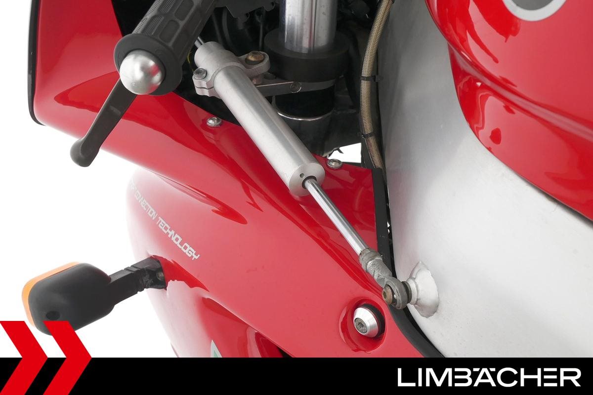 Eine Bimota SB6R Racing in gepflegtem Zustand u.a. mit Brembo-Bremsen und Stahlflexleitungen.