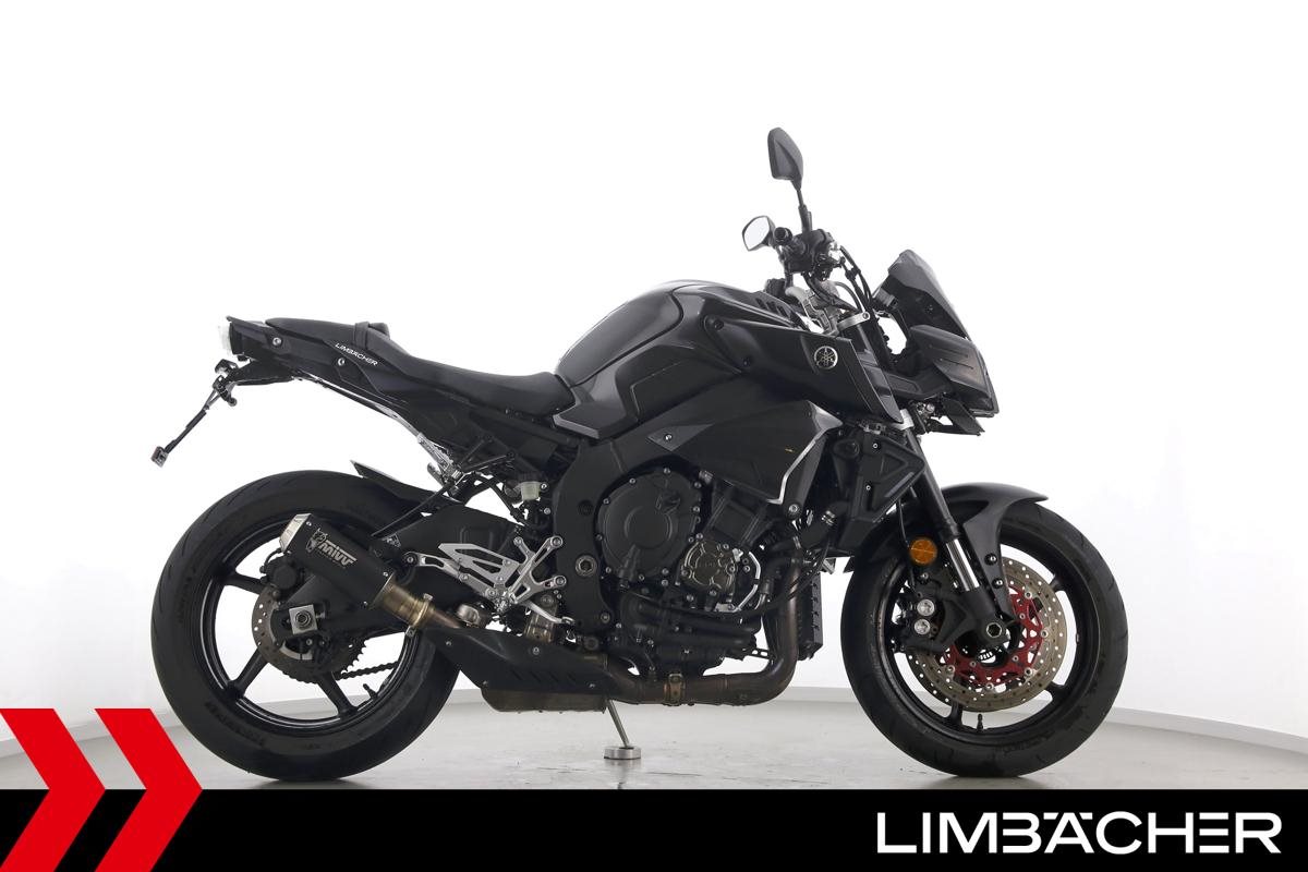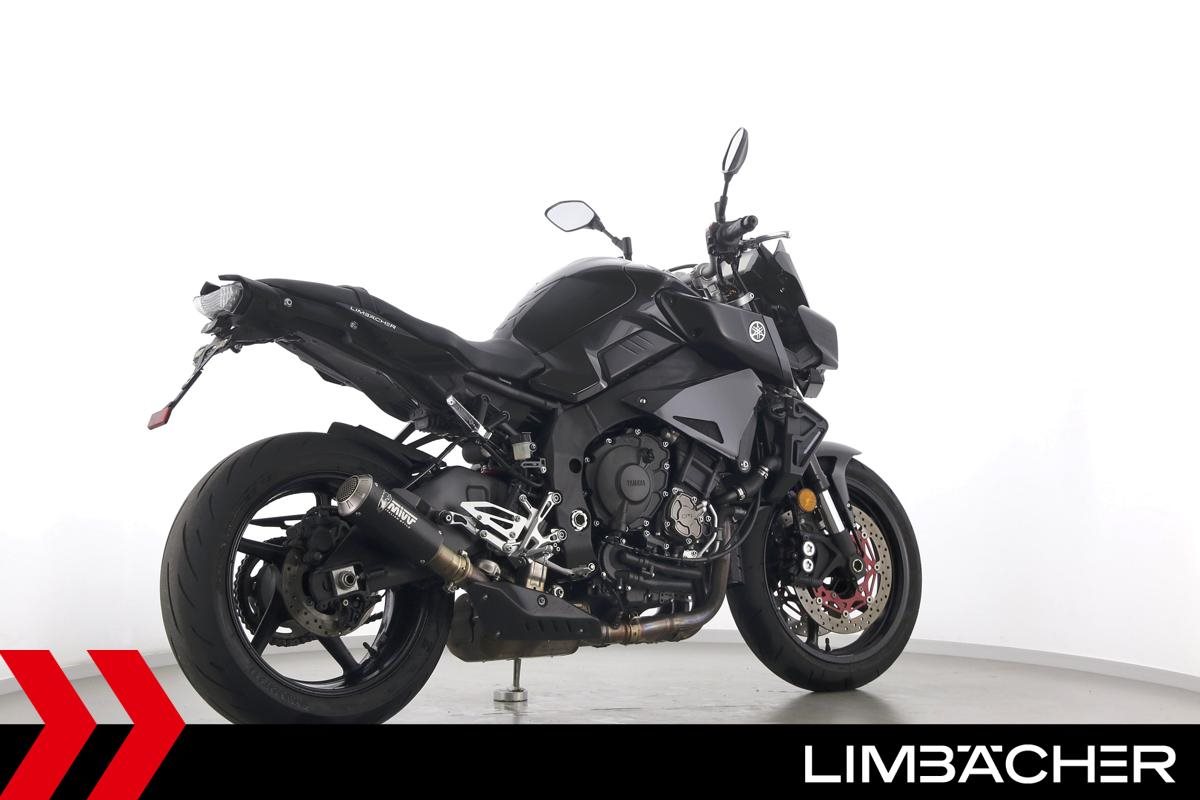 Eine Yamaha MT-10 in gepflegtem Zustand u.a. mit Mivv-Endschalldämpfer sowie kurzem Kennzeichenhalter.