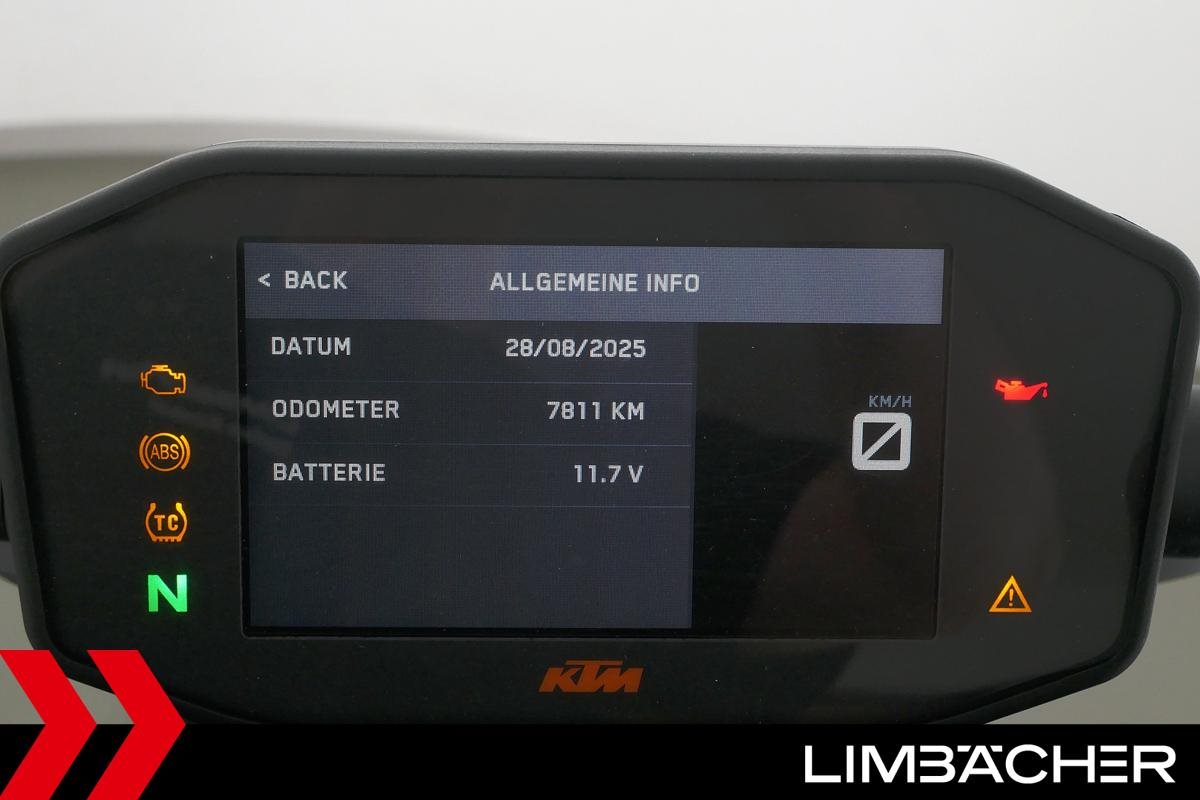 Eine KTM 890 Duke R aus zweiter Hand in sehr gepflegtem Zustand u.a. mit kurzem Kennzichenhalter sowie Traktionskontrolle.