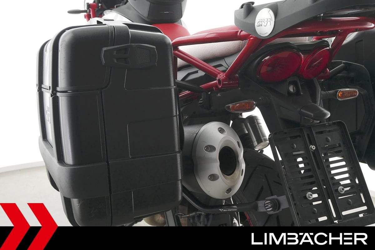 Eine Moto Guzzi V85 TT aus zweiter Hand in gepflegtem Zustand u.a. mit Givi-Koffersystem sowie Sturzbügeln in schwarz.