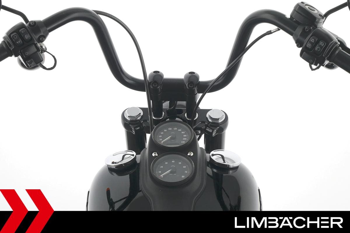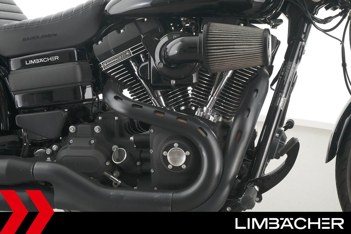 Eine scheckheftgepflegte Harley-Davidson Dyna Low Rider S FXDLS in gepflegtem Zustand u.a. mit Saddlemen Komfortsitzbank sowie Sonderlenker Ape.