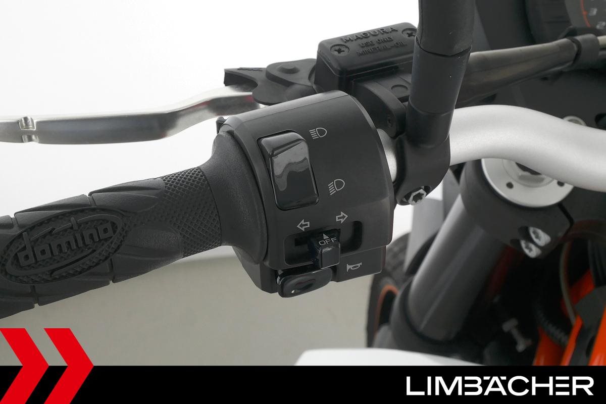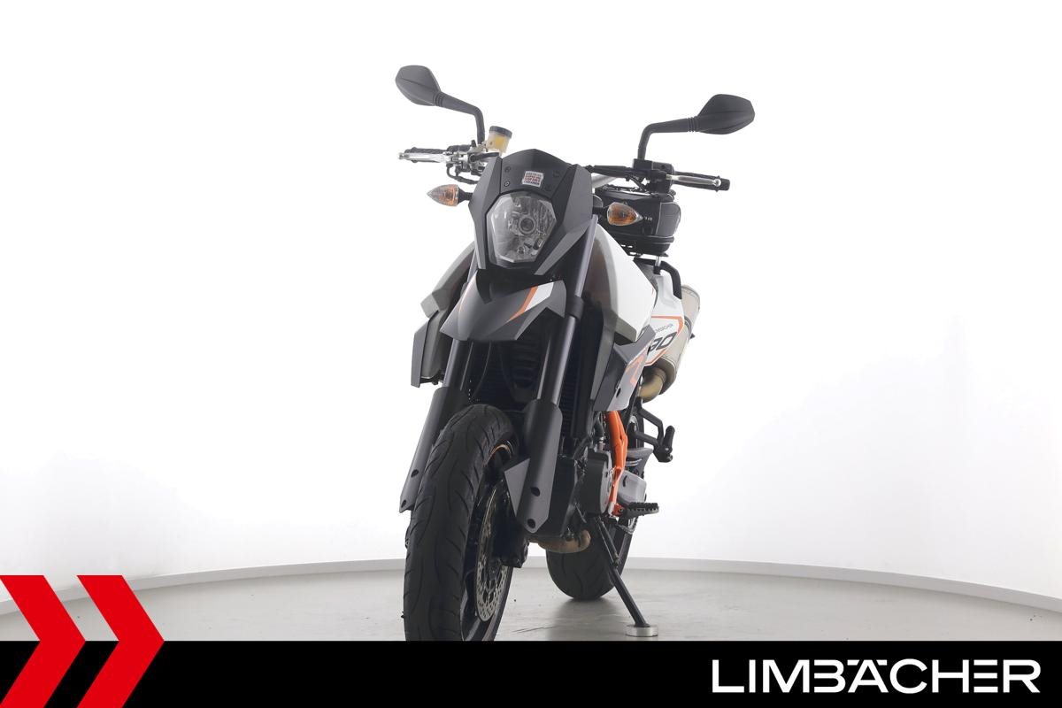 Eine KTM 990 Supermoto aus zweiter Hand in sehr gepflegtem Zustand u.a. mit Akrapovic-Endschalldämpfer sowie Hepco&Becker Gepäcktasche.