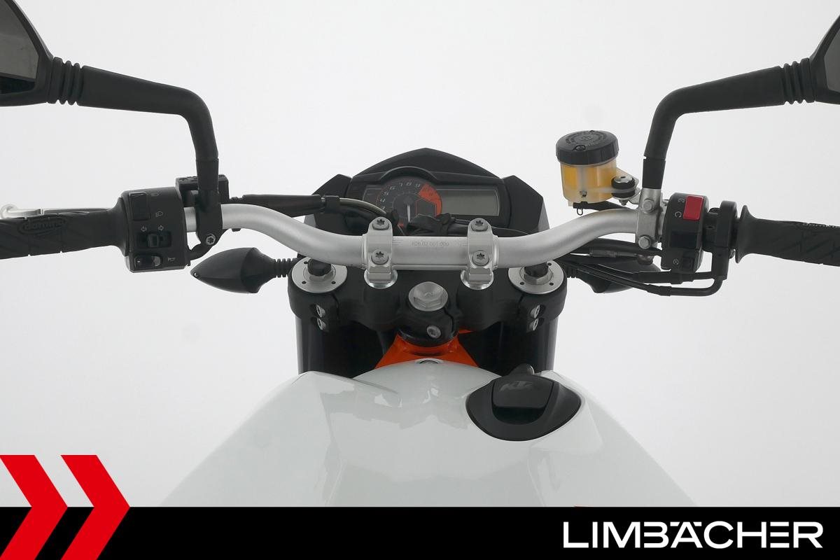 Eine KTM 990 Supermoto aus zweiter Hand in sehr gepflegtem Zustand u.a. mit Akrapovic-Endschalldämpfer sowie Hepco&Becker Gepäcktasche.
