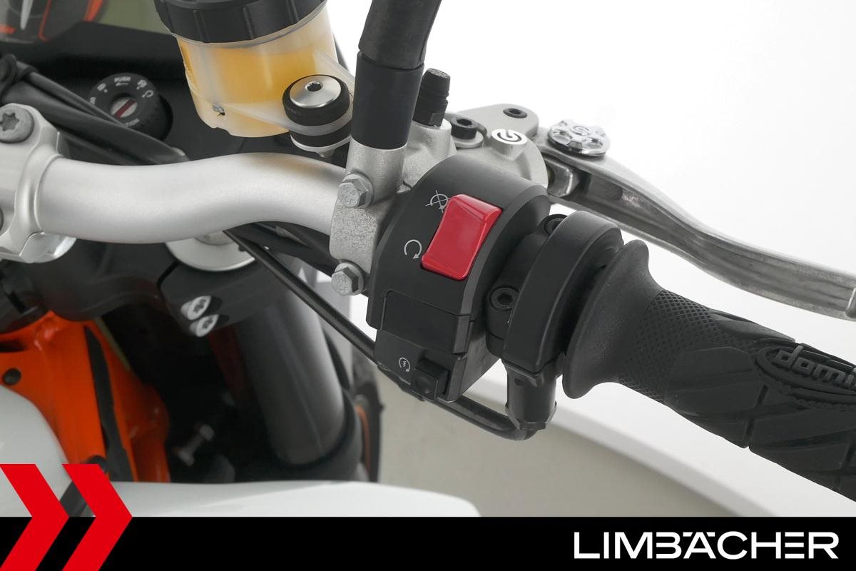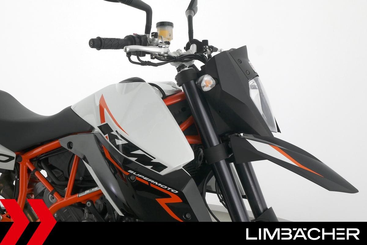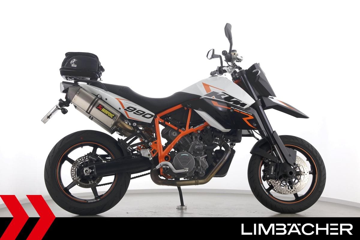Eine KTM 990 Supermoto aus zweiter Hand in sehr gepflegtem Zustand u.a. mit Akrapovic-Endschalldämpfer sowie Hepco&Becker Gepäcktasche.