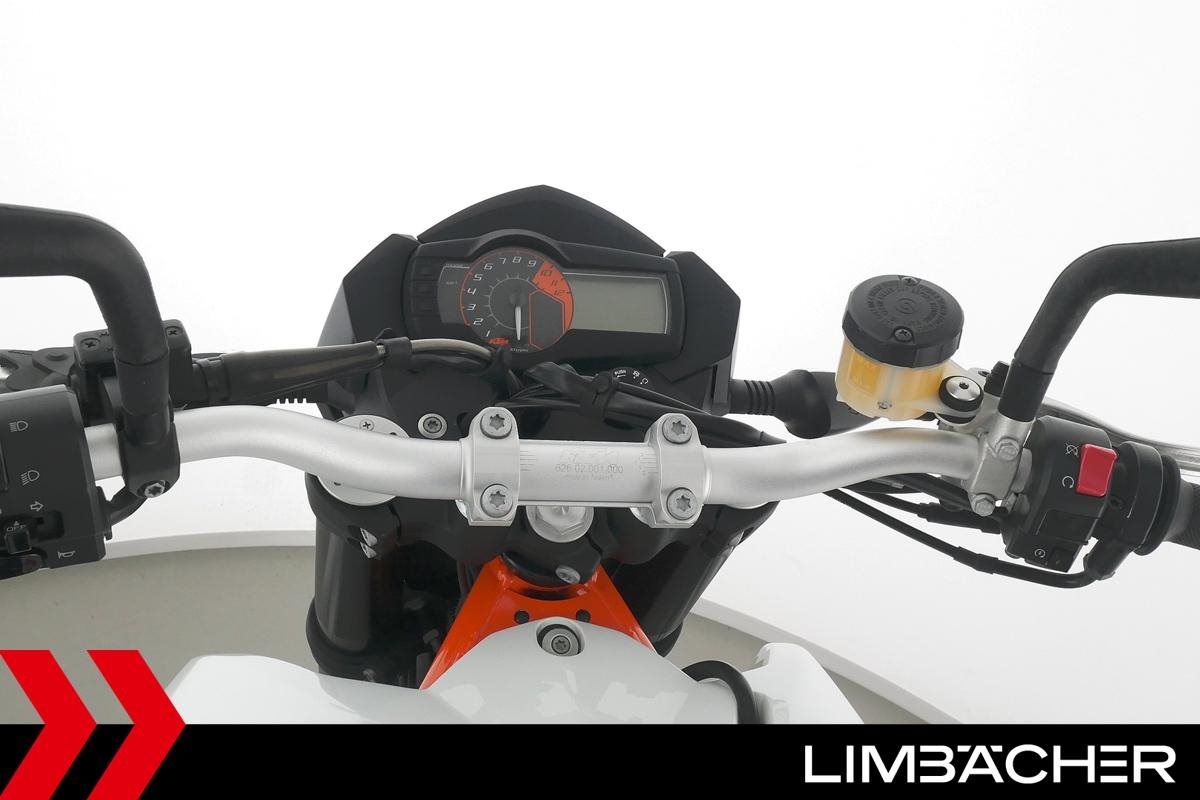 Eine KTM 990 Supermoto aus zweiter Hand in sehr gepflegtem Zustand u.a. mit Akrapovic-Endschalldämpfer sowie Hepco&Becker Gepäcktasche.