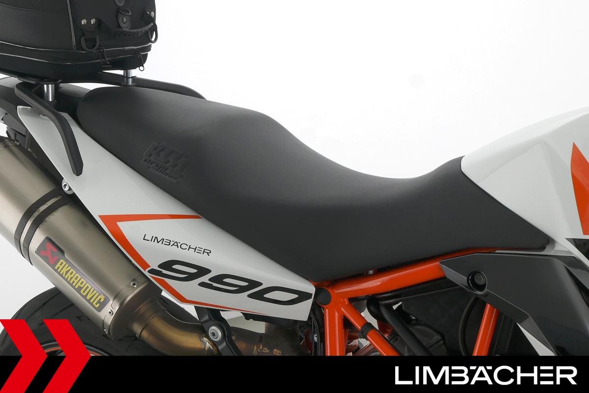 Eine KTM 990 Supermoto aus zweiter Hand in sehr gepflegtem Zustand u.a. mit Akrapovic-Endschalldämpfer sowie Hepco&Becker Gepäcktasche.