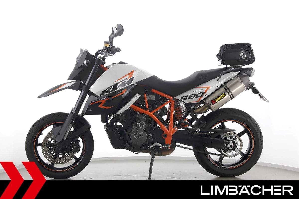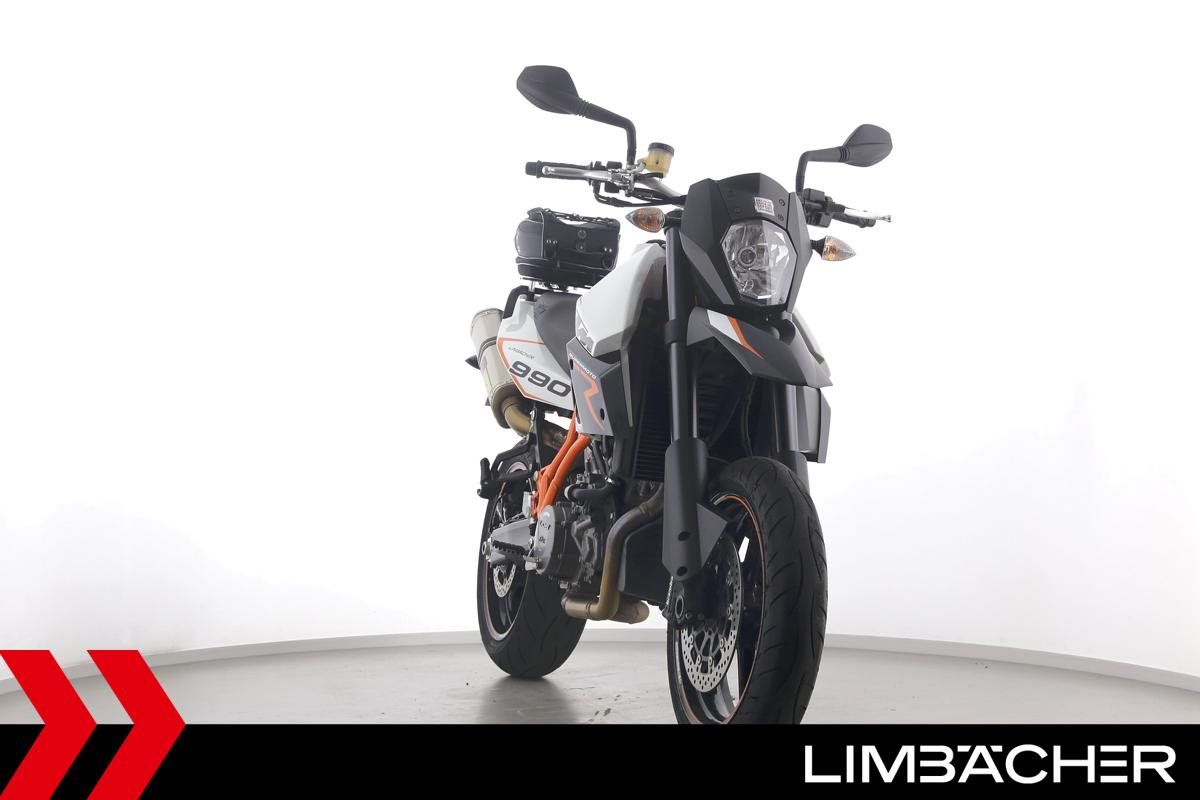 Eine KTM 990 Supermoto aus zweiter Hand in sehr gepflegtem Zustand u.a. mit Akrapovic-Endschalldämpfer sowie Hepco&Becker Gepäcktasche.