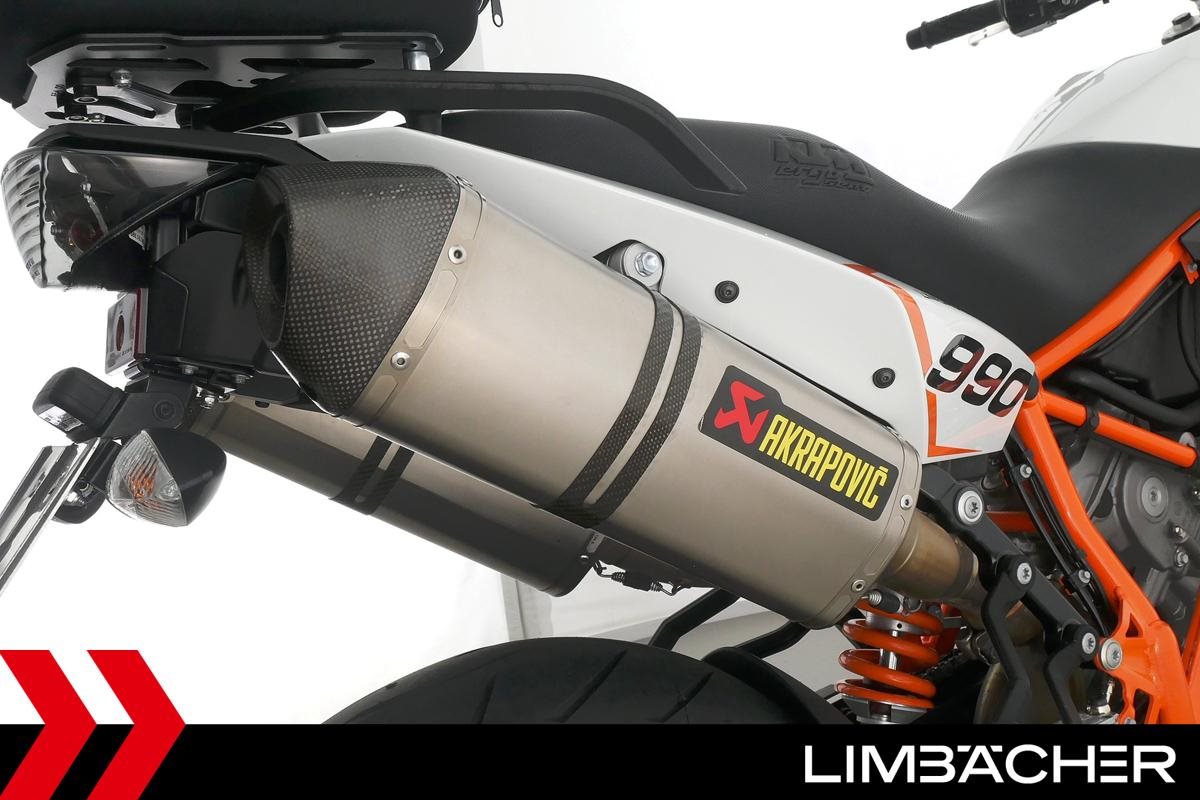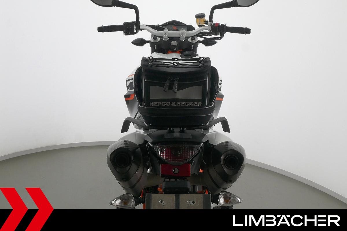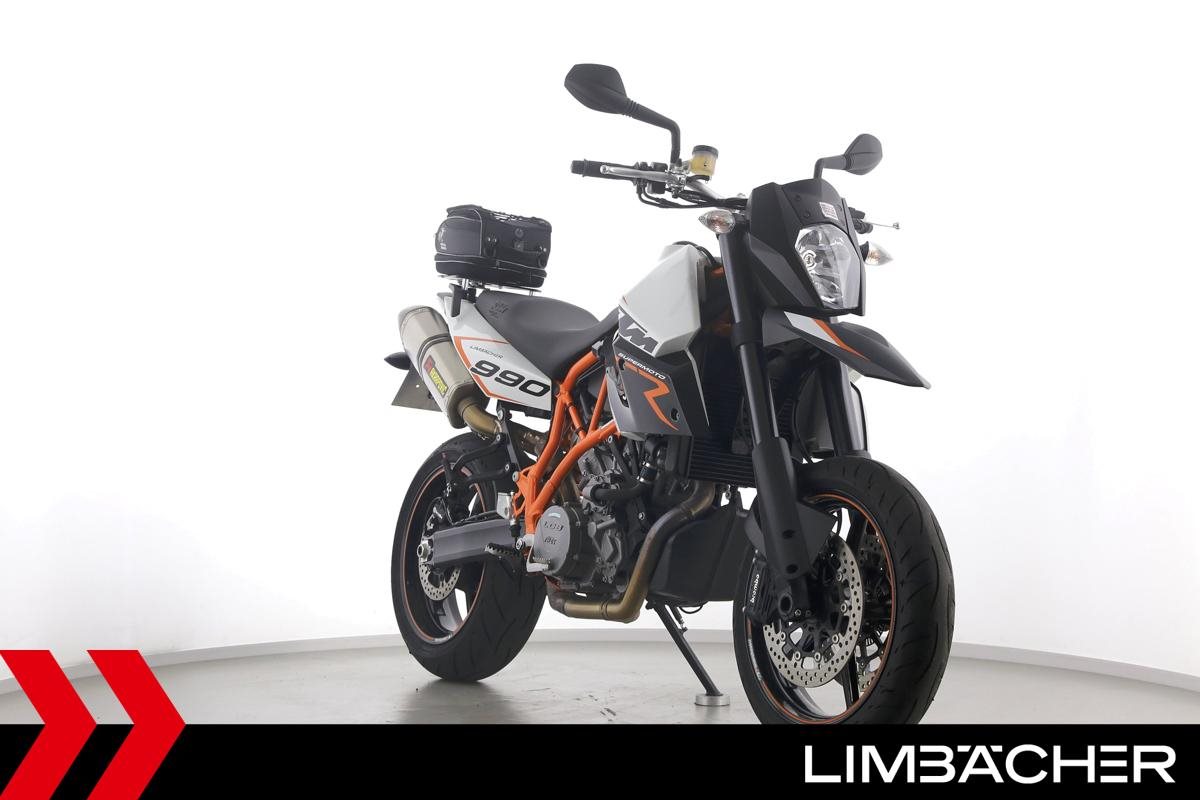 Eine KTM 990 Supermoto aus zweiter Hand in sehr gepflegtem Zustand u.a. mit Akrapovic-Endschalldämpfer sowie Hepco&Becker Gepäcktasche.