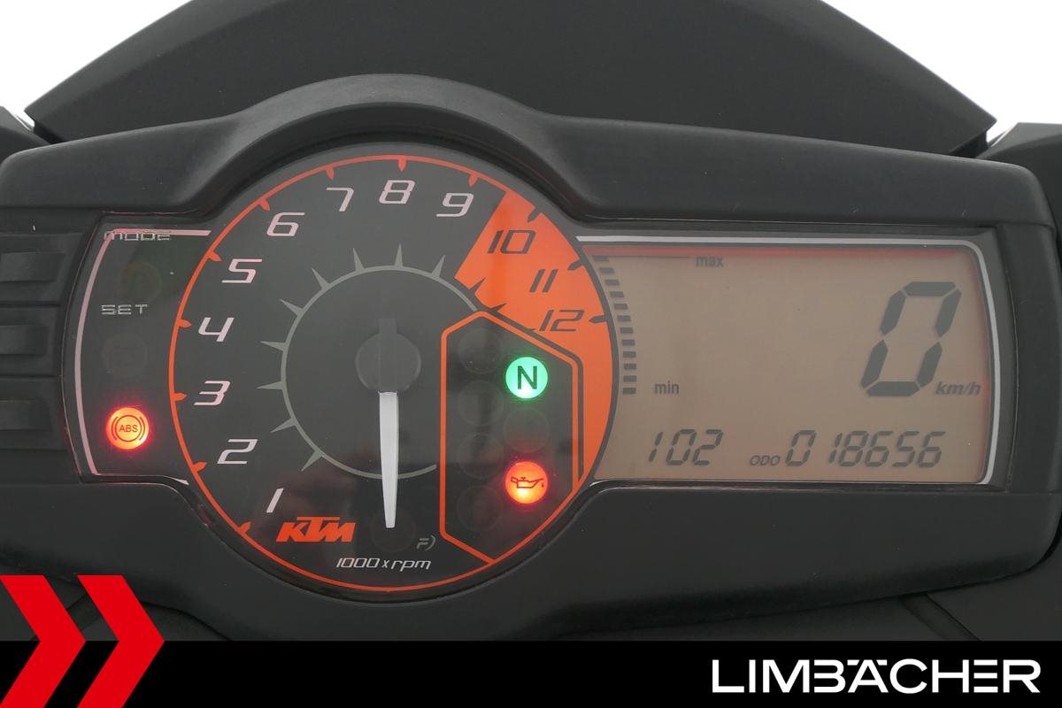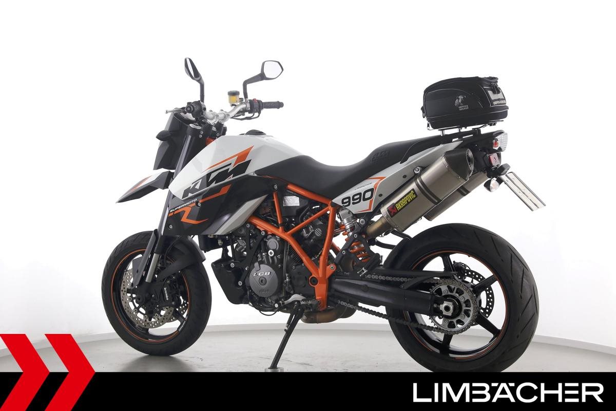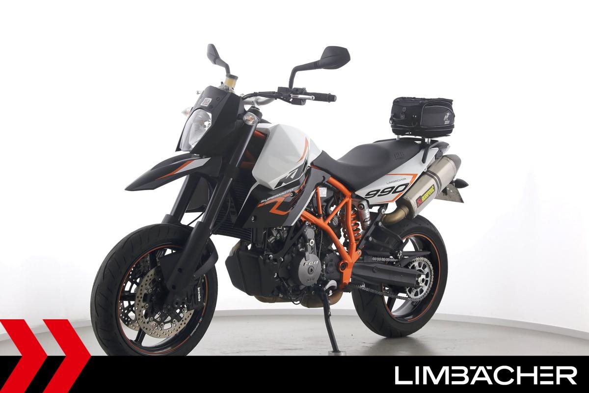 Eine KTM 990 Supermoto aus zweiter Hand in sehr gepflegtem Zustand u.a. mit Akrapovic-Endschalldämpfer sowie Hepco&Becker Gepäcktasche.