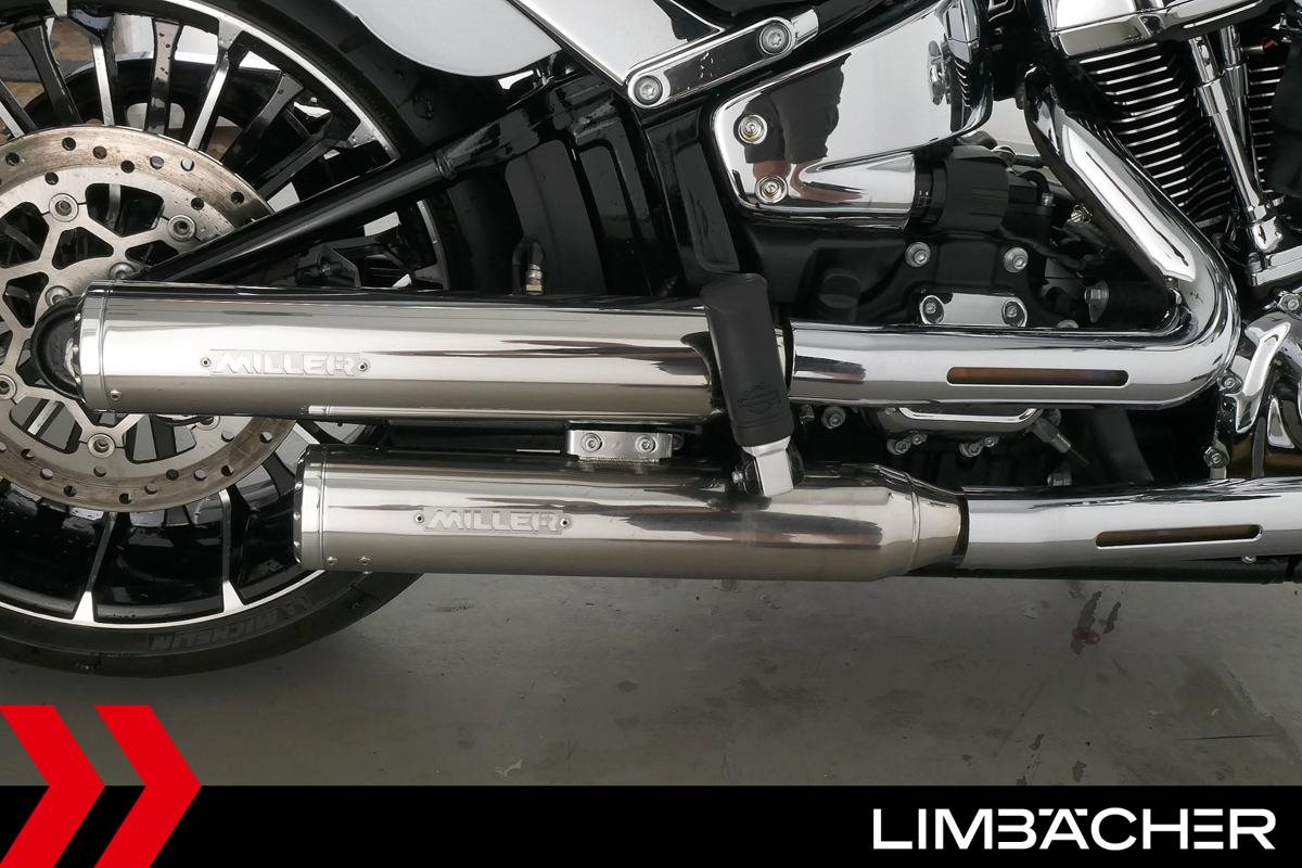 Eine scheckheftgepflegte Harley-Davidson Softail Breakout FXBR in Topzustand u.a. mit Miller-Endschalldämpfer und Tempomat.