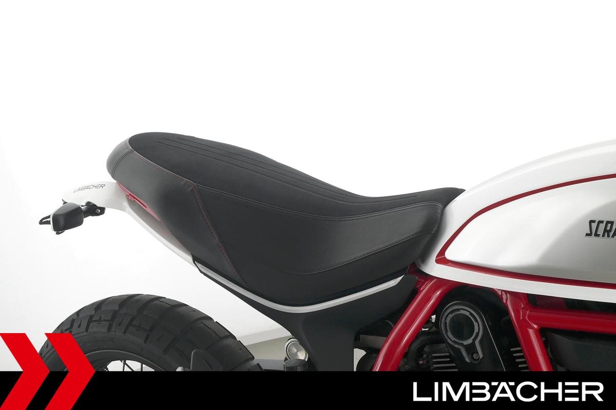 Eine scheckheftgepflegte Ducati Scrambler Desert Sled aus zweiter Hand in sehr gepflegtem Zustand u.a. mit kurzem Kennzeichenhalter sowie großem Windschild.