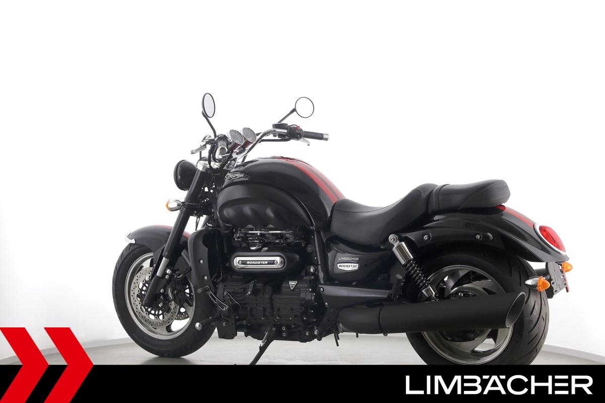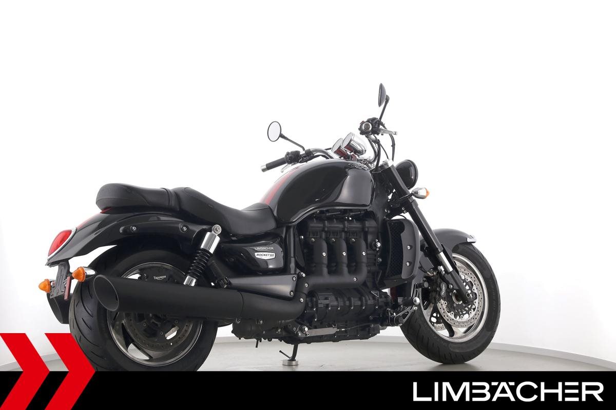 Eine Triumph Rocket III Roadster in gepflegtem Zustand u.a. mit Lottermann-Fussrastenanlage sowie Komfort-Sitzen.