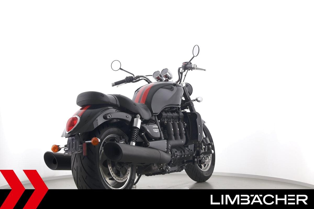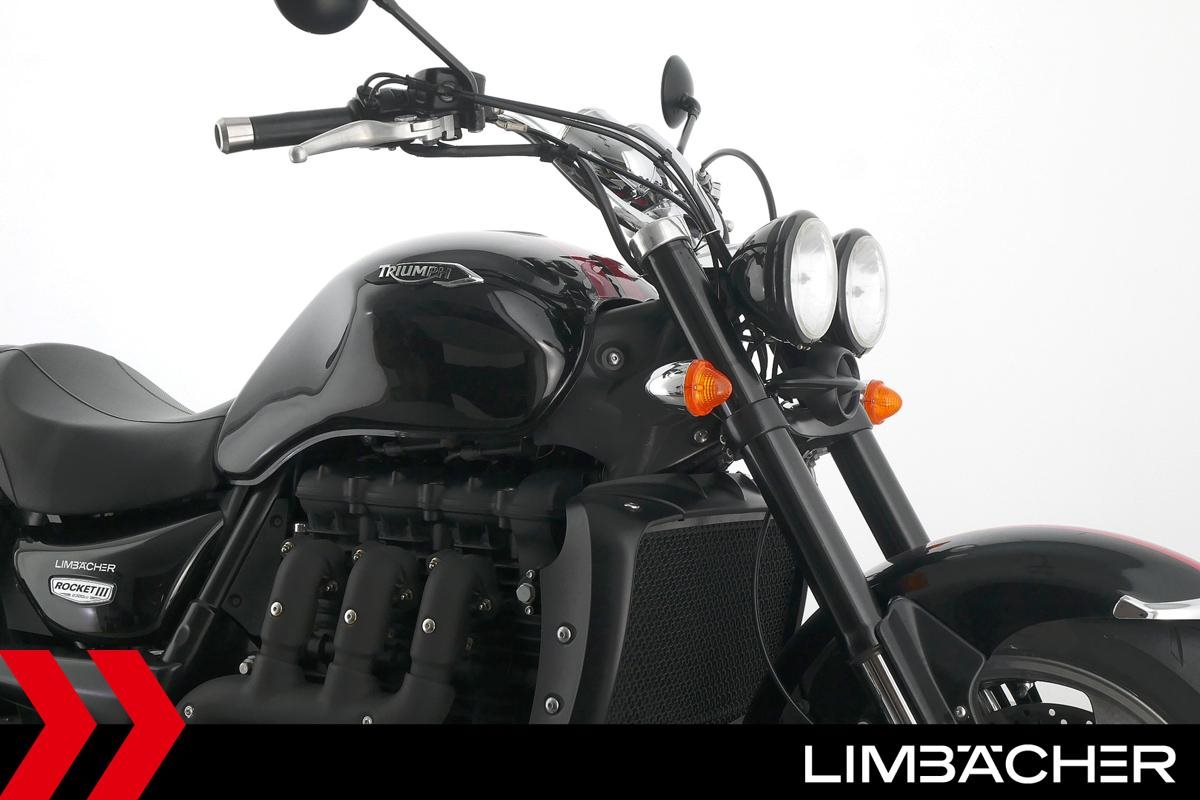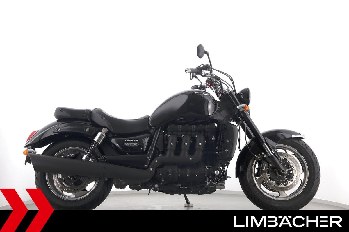 Eine Triumph Rocket III Roadster in gepflegtem Zustand u.a. mit Lottermann-Fussrastenanlage sowie Komfort-Sitzen.