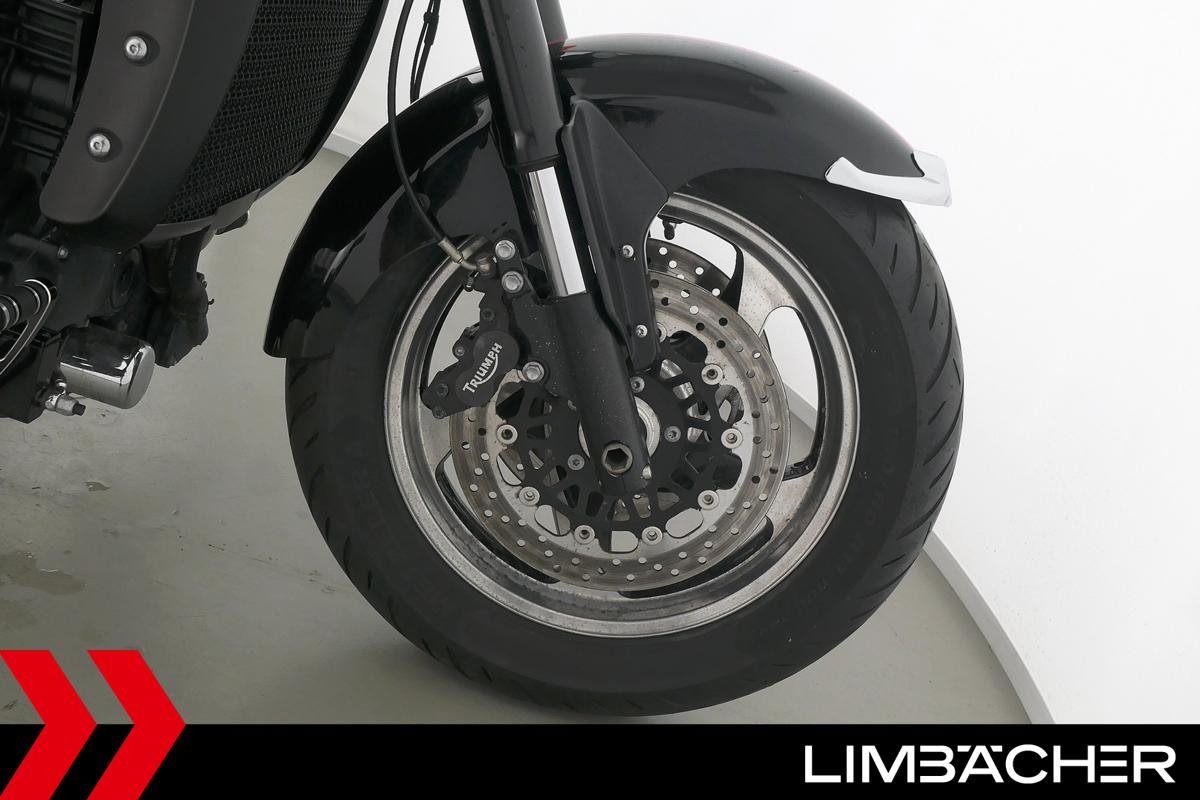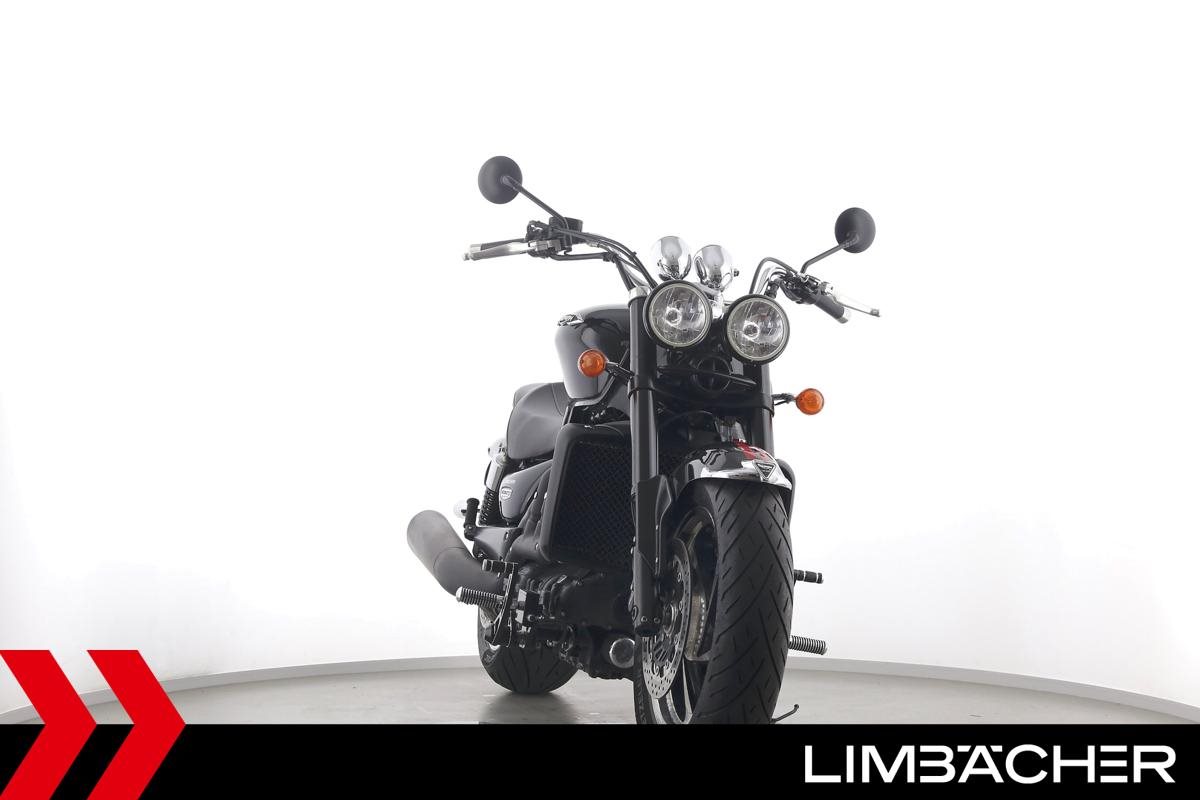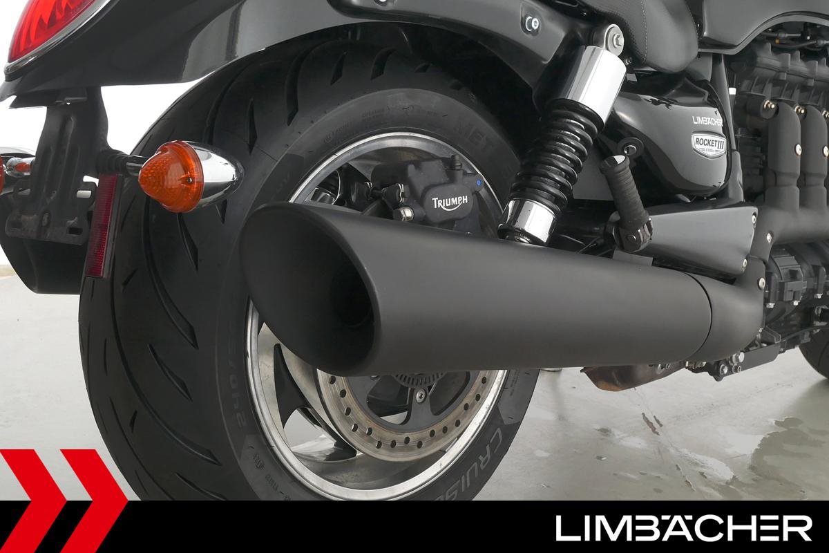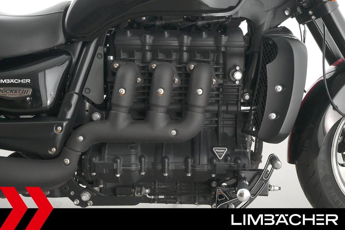Eine Triumph Rocket III Roadster in gepflegtem Zustand u.a. mit Lottermann-Fussrastenanlage sowie Komfort-Sitzen.