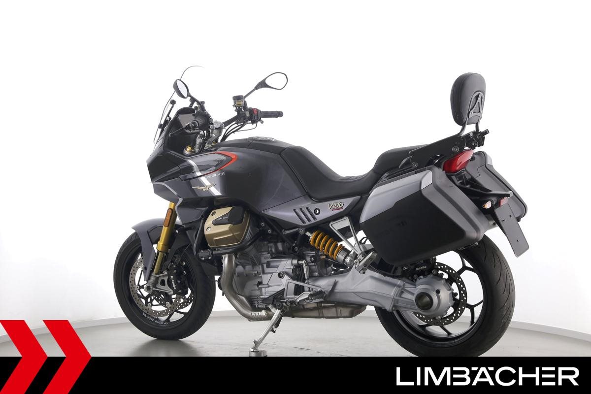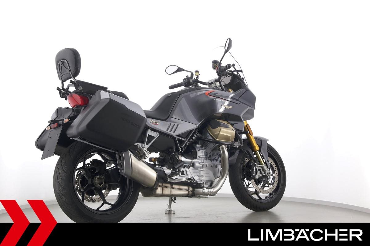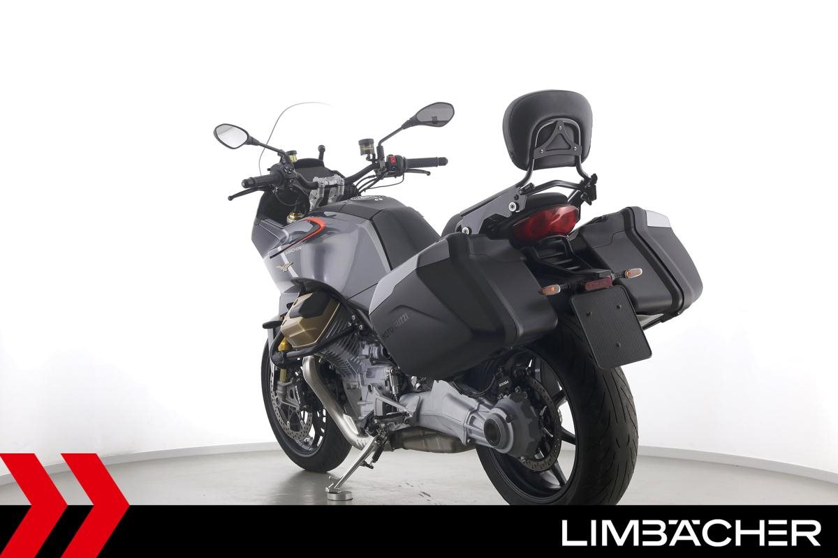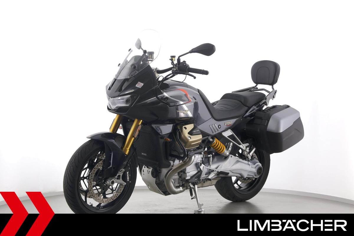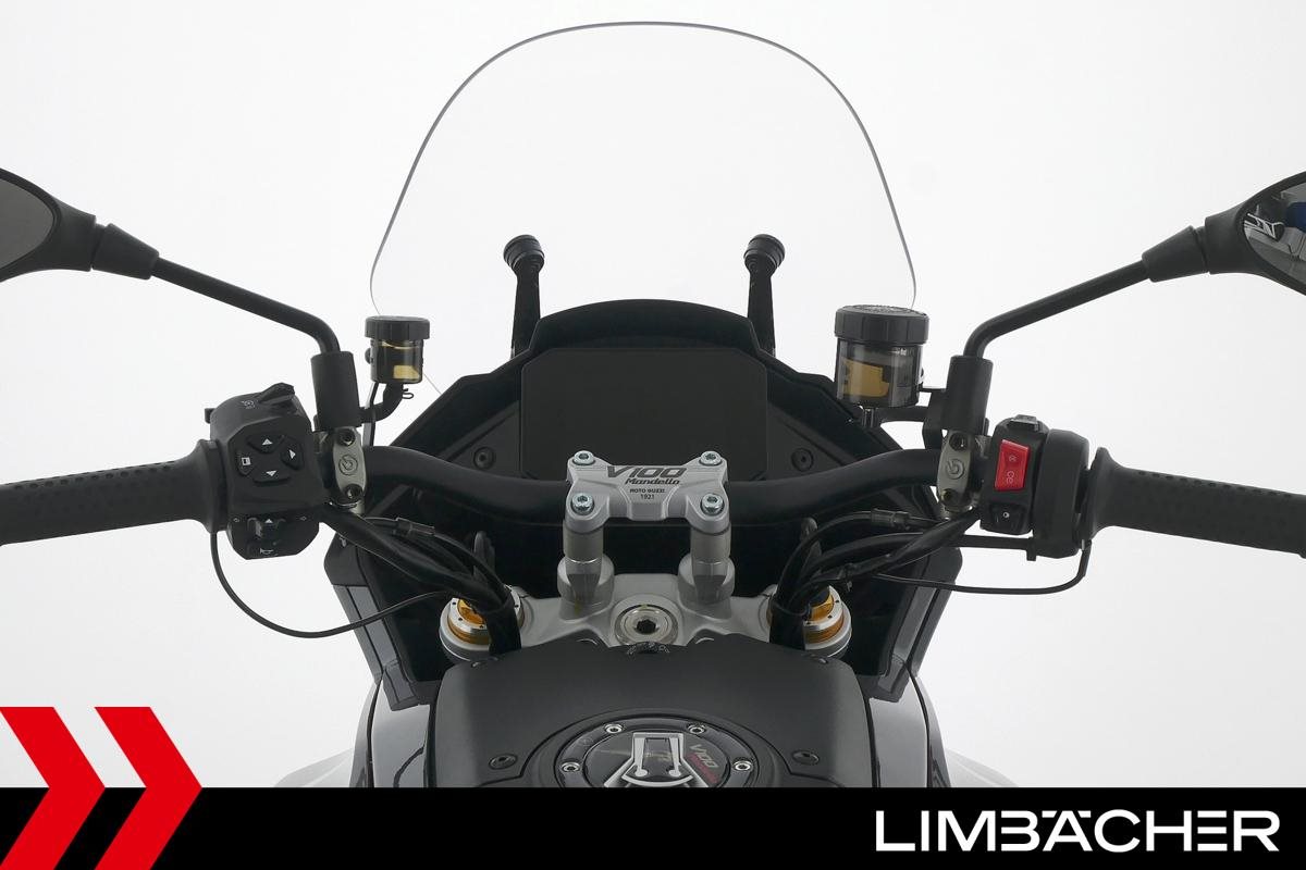 Eine Moto Guzzi V100 Mandello S aus erster Hand in gepflegtem Zustand u.a. mit Öhlins-Fahrwerk sowie MotoGuzzi-Koffersystem gleichschließend.