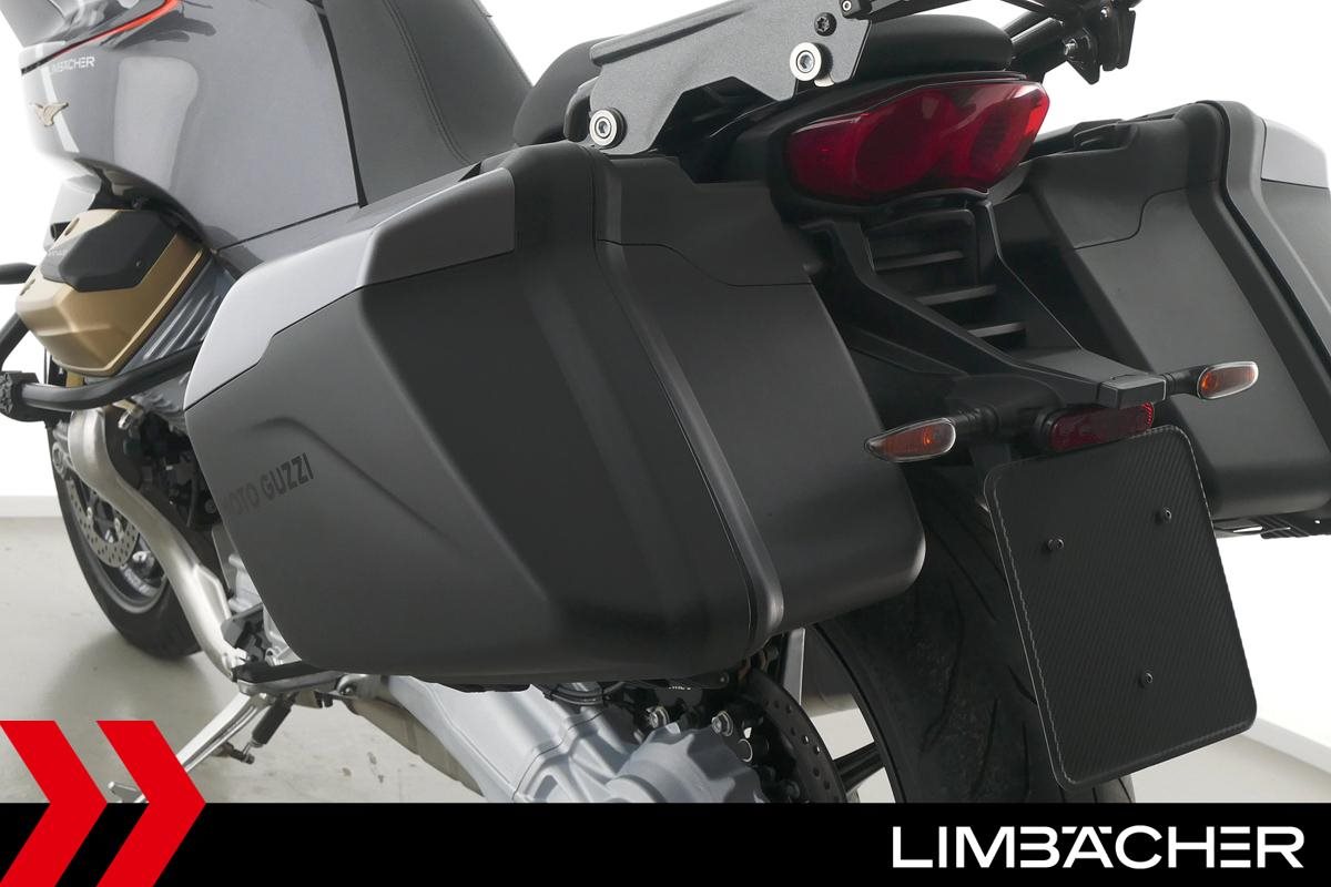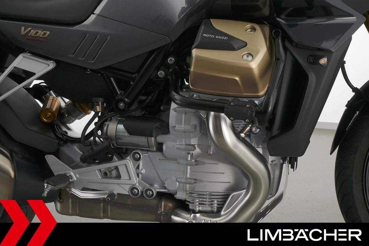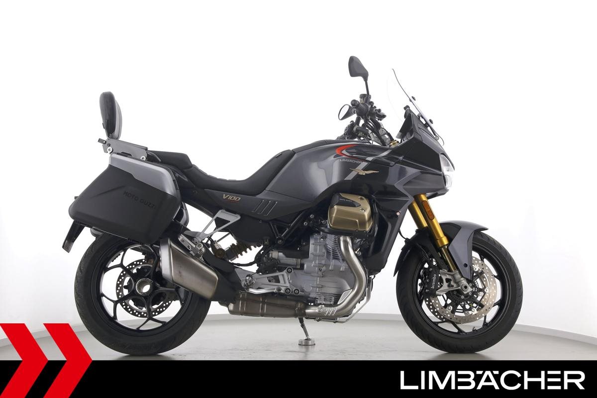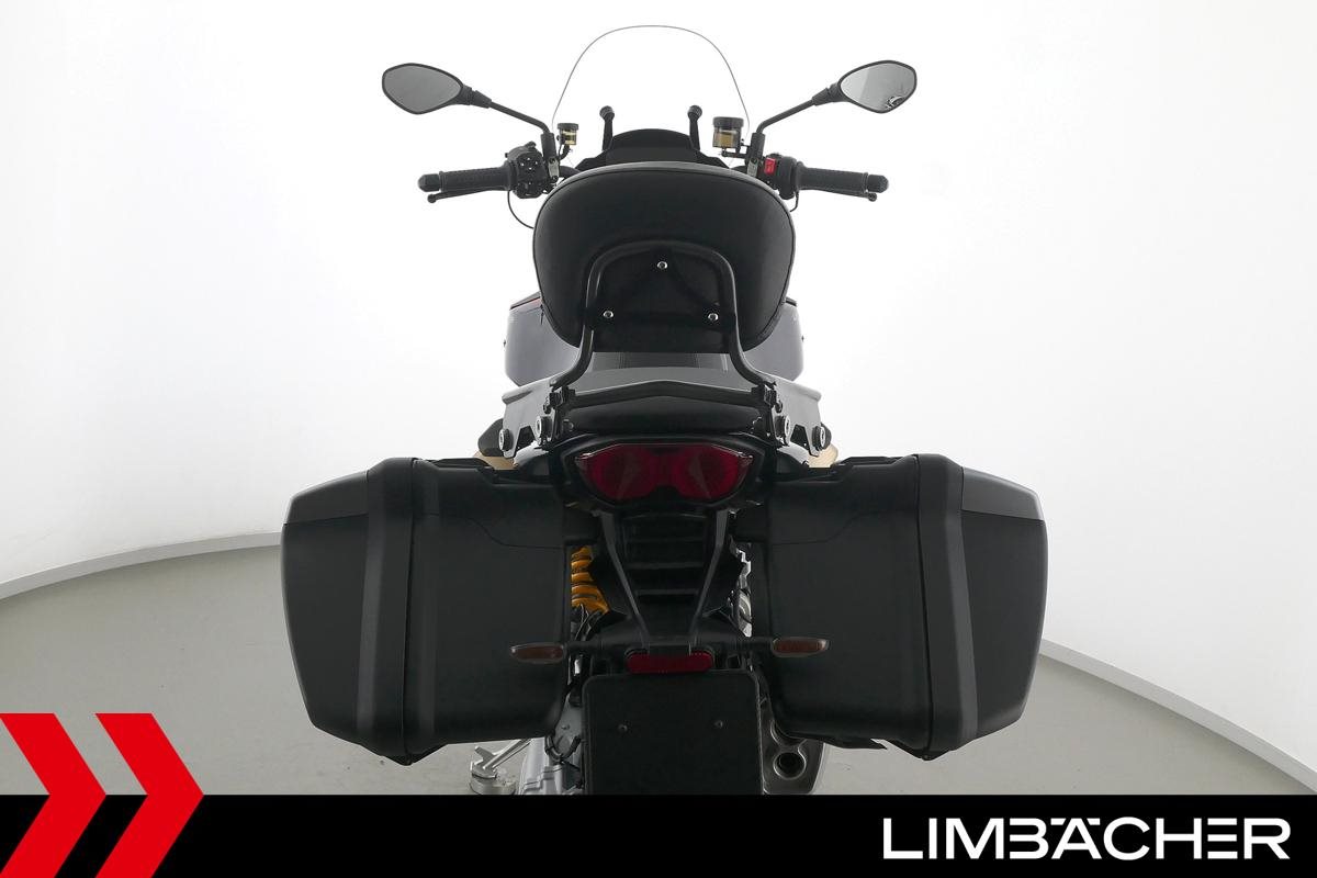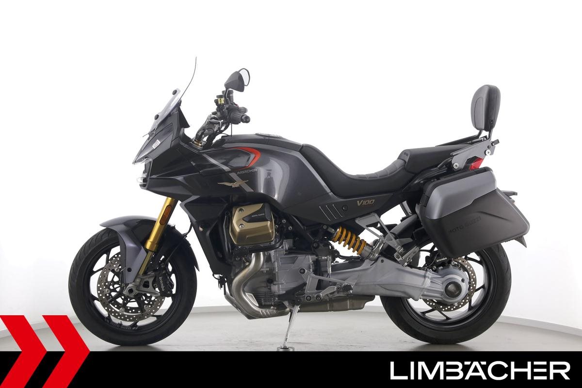 Eine Moto Guzzi V100 Mandello S aus erster Hand in gepflegtem Zustand u.a. mit Öhlins-Fahrwerk sowie MotoGuzzi-Koffersystem gleichschließend.