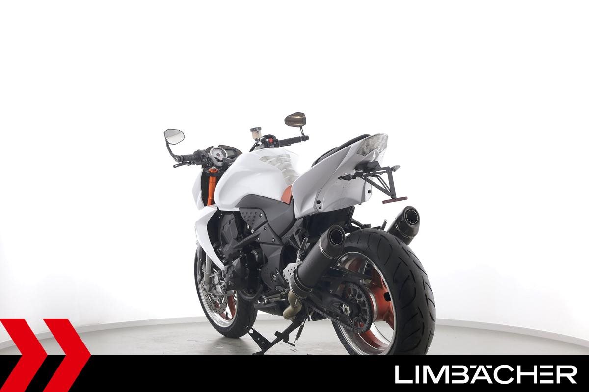 Eine scheckheftgepflegte Kawasaki Z 1000 in gepflegtem Zustand u.a. mit SC-Project-Endschalldämpfer sowie kurzem Kennzeichenhalter.
