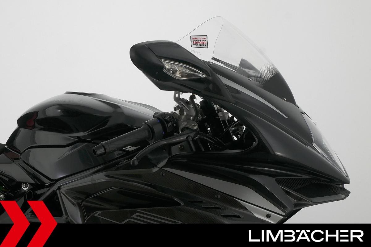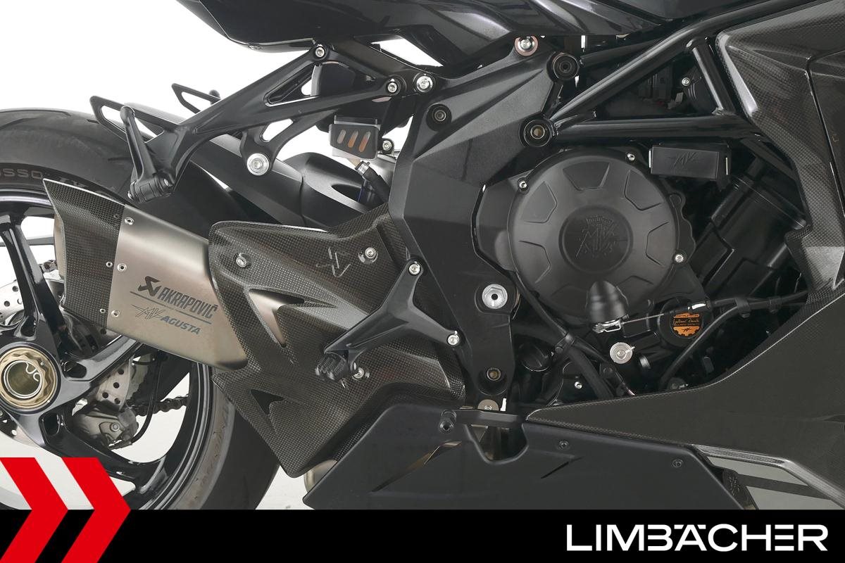 Eine MV Agusta F3 RR in Topzustand u.a. mit Akrapovic-Endschalldämpfer sowie Carbon-Verkleidung und -Frontfender.
