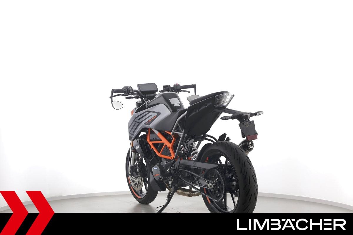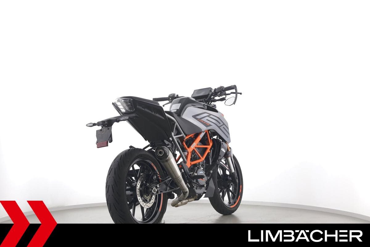 Eine KTM 125 Duke aus erster Hand in gepflegtem Zustand u.a. mit Radical-Racing-Endschalldämpfer sowie Lenkerend-Spiegeln.