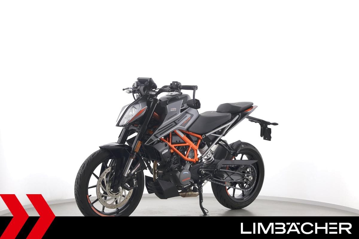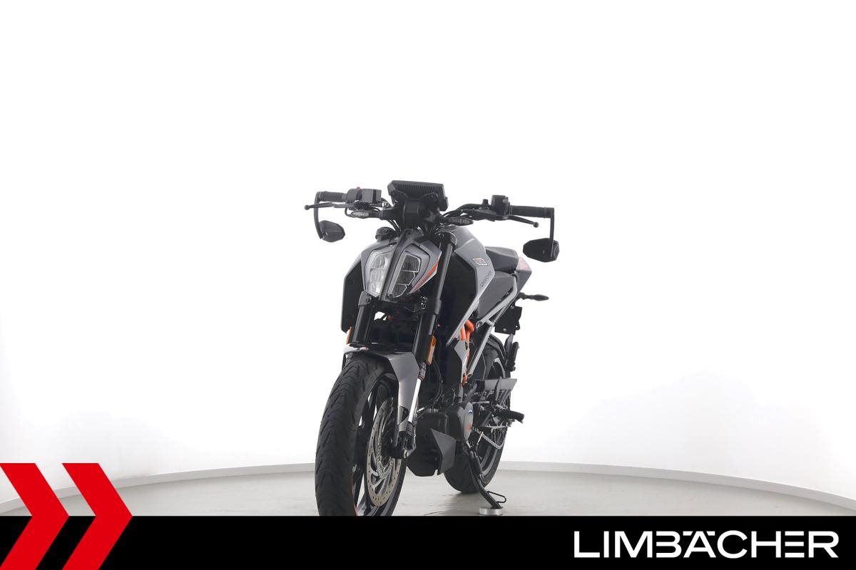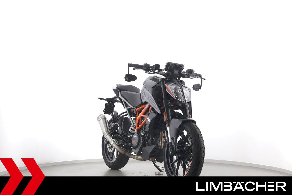 Eine KTM 125 Duke aus erster Hand in gepflegtem Zustand u.a. mit Radical-Racing-Endschalldämpfer sowie Lenkerend-Spiegeln.