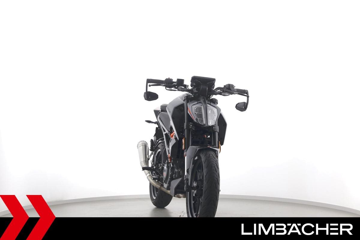 Eine KTM 125 Duke aus erster Hand in gepflegtem Zustand u.a. mit Radical-Racing-Endschalldämpfer sowie Lenkerend-Spiegeln.