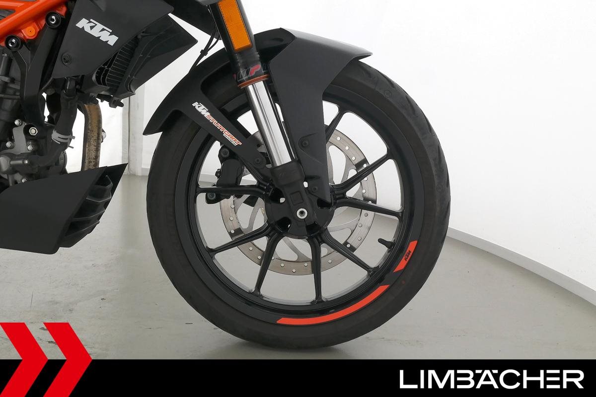 Eine KTM 125 Duke aus erster Hand in gepflegtem Zustand u.a. mit Radical-Racing-Endschalldämpfer sowie Lenkerend-Spiegeln.