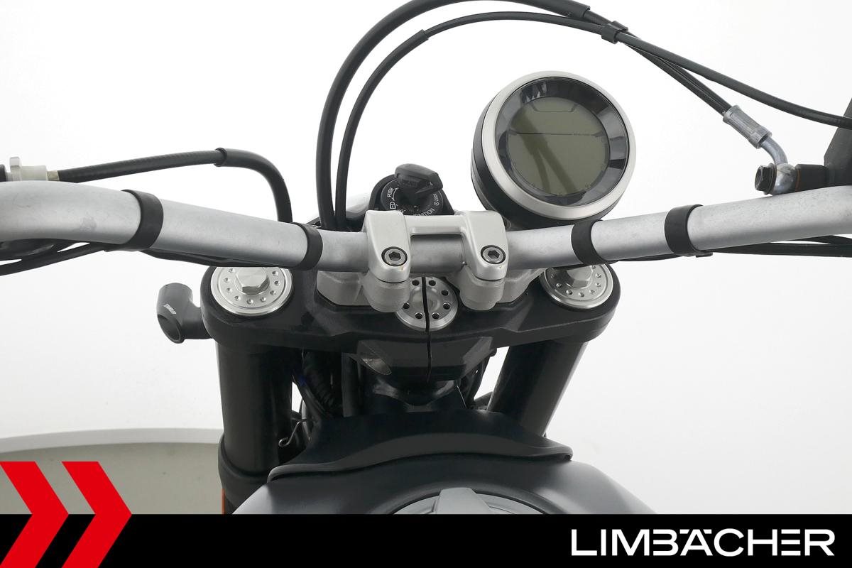 Eine scheckheftgepflegte Ducati Scrambler Street Classic aus erster Hand in sehr gepflegtem Zustand u.a. mit Drosselung auf 34 kW und Akrapovic-Endschalldämpfer.
